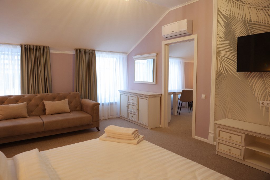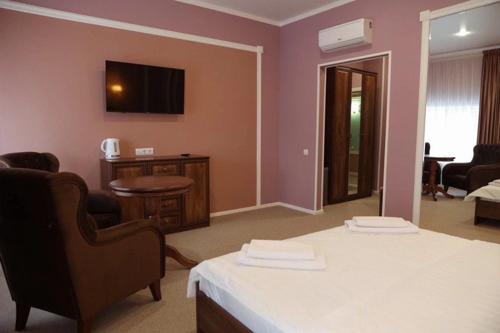 В номере вы найдёте телевизор и халат. Перечисленные услуги есть не во всех номерах.