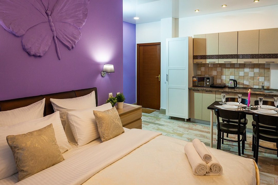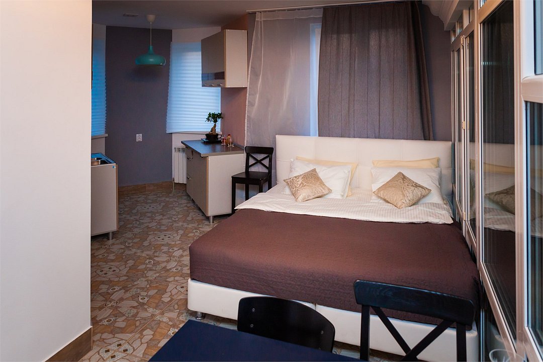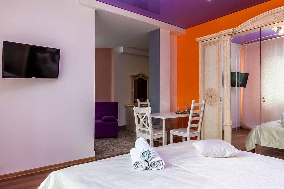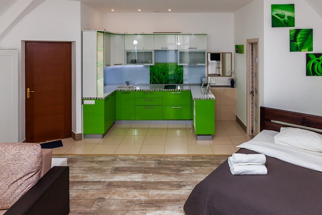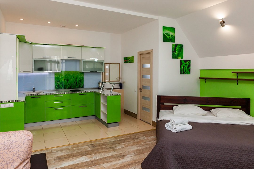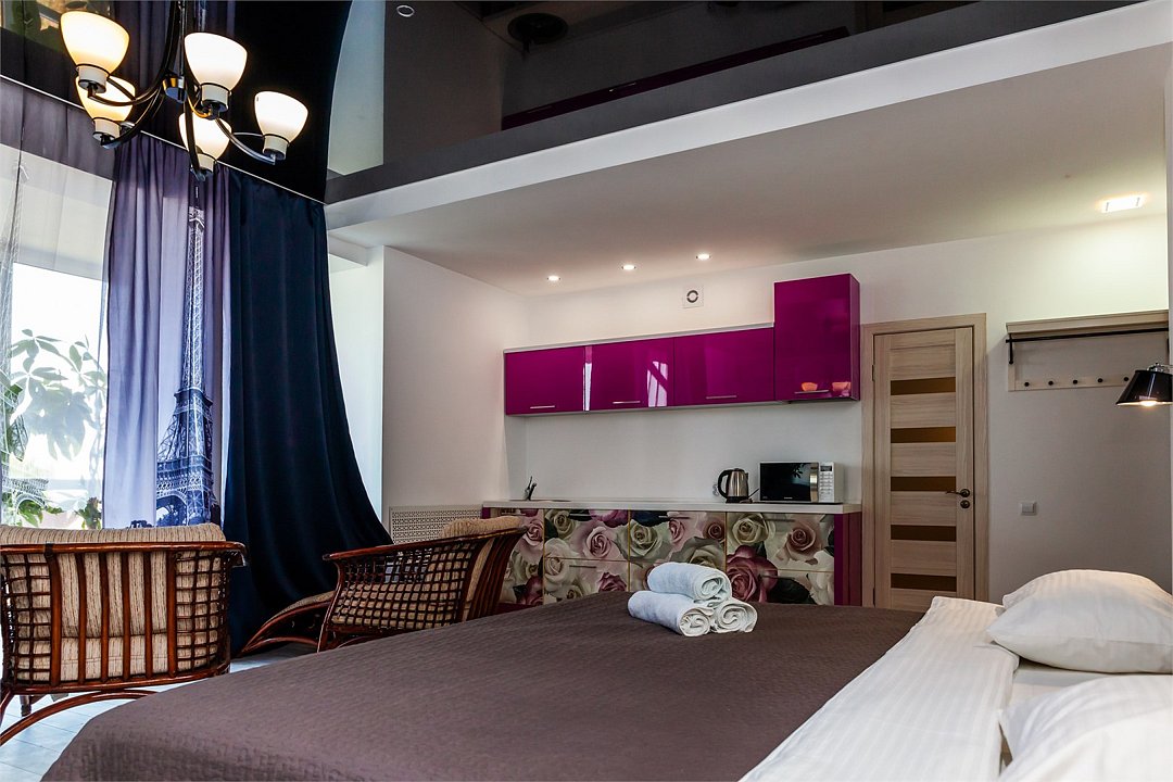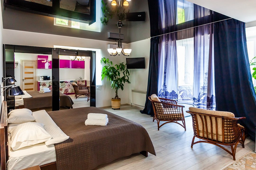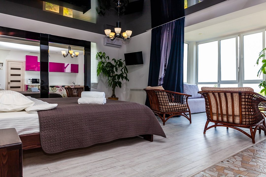 Дизайнеры взяли лучшее в оформлении от элитных домов и дорогих гостиничных сетей: роскошное лобби, просторный ресторан и современная система консьерж-сервиса. Вы будете приятно поражены, насколько уютно может быть в холле с высокими потолками и панорамными окнами. В наших апартаментах в стиле ЛОФТ Вам будет легко и удобно. Просторная площадь и уютная атмосфера, помогут разместиться и комфортно чувствовать себя семье из 6 человек, 4 взрослых и двое детей, либо пятерым взрослымУслуги и удобства