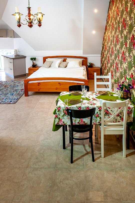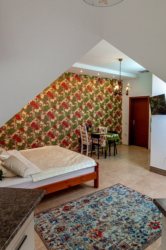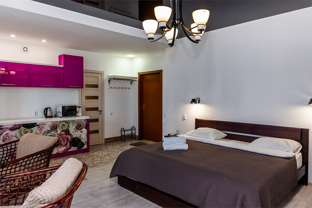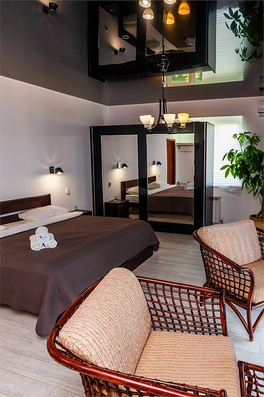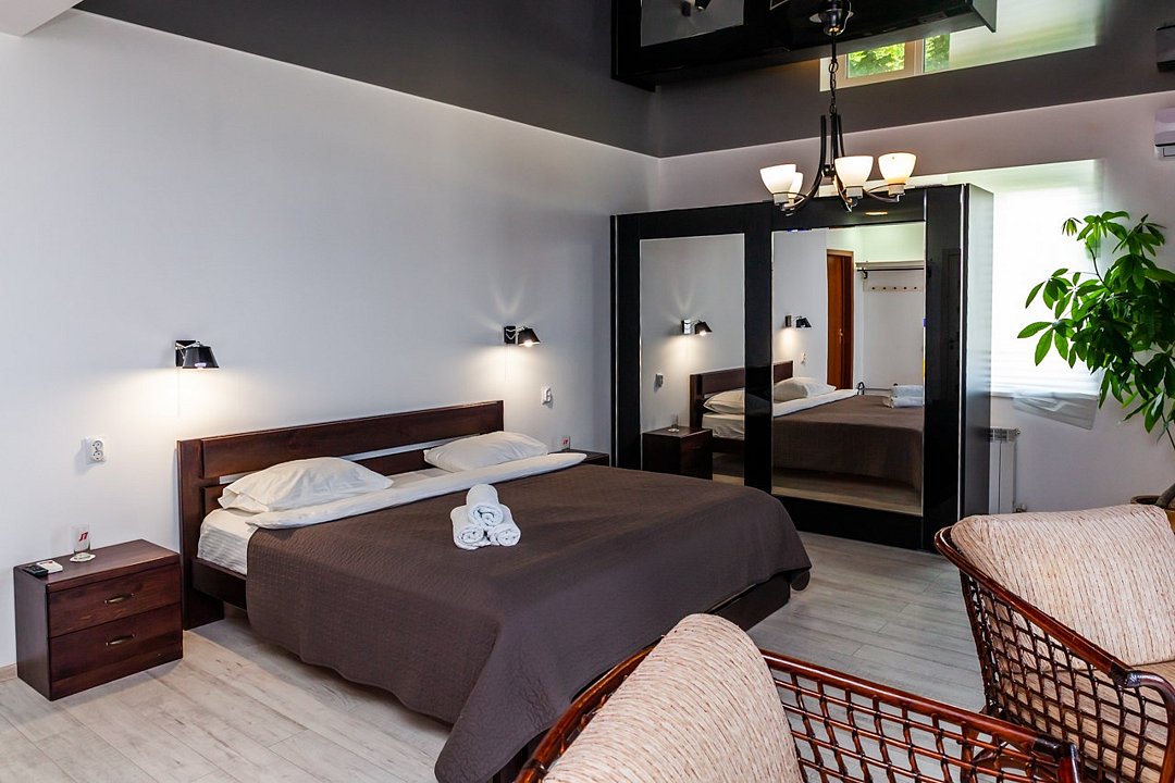Wi-Fi, холодильник, фен, плита для приготовления пищи, микроволновая печь, утюг, радио, обогреватель, душевая кабина, санузел, тапочки, гигиенические средства, кровать «King size», ортопедический матрас, тумбы, стулья, шкаф для одежды, вешалки, журнальный столик, письменный стол, обеденный стол, кухня, чайный набор, стиральная машина, чайник, унитаз, раковина, косметическое зеркало, обеденная зона, отопление, душ, кулер на этаже, плиточное покрытие, вид во двор, высокие потолки, кухонная посуда, стаканы, кухонная утварь, столовые приборы, стиральная машина и сушилка, туалетный столик, кофейный столик, стул, стол, туалетный столик, туалетные средства, туалет, мангал, цифровое тв, диван-кровать, раскладное кресло, мини-кухня, кухонный уголок, номер для некурящих, рабочий стол, гигиенический душ, без питомцевВ номере
