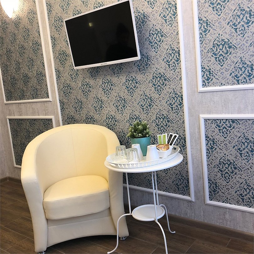 Отель находится в историческом трехэтажном здании, выстроенном во второй половине XVIII века. Гостиница небольшая и рассчитана только на 17 мест. Гостей ожидают номера категории Стандарт, Улучшенный, Семейный. В номерах стильный интерьер, хорошая меблировка, есть вся необходимая бытовая техника.