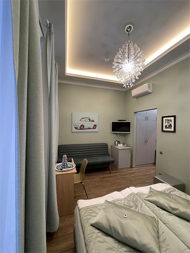 Уютный небольшой номер с двухспальной кроватью и рабочим столом оборудован мини-холодильником и кондиционером. Номер подходит для краткосрочного пребывания в мини-отеле для одного или двух человек.Услуги и удобства