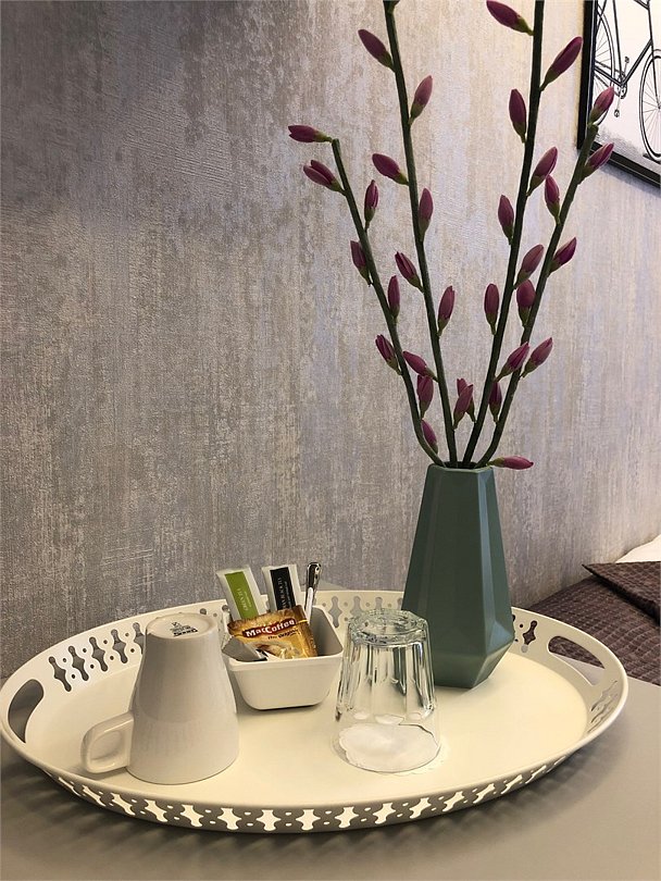 спутниковое телевидение, Wi-Fi, кондиционер, светильник, фен, вентилятор, система безопасности, обогреватель, душевая кабина, банные полотенца, тапочки, две односпальные или большая двуспальная кровать, шкаф для одежды, вешалки, журнальный столик, зеркало, звуконепроницаемые стены и окна, чайный набор, набор посуды, обслуживание номеров, сейф, унитаз, раковина, косметическое зеркало, отопление, кулер на этаже, плиточное покрытие, вид во двор, высокие потолки, стаканы, туалетный столик, туалетные средства, диван-кровать, раскладной диван, телевизор с плоским экраном, мини-холодильник, москитная сетка, гостиничная парфюмерия, номер для некурящих, без питомцевВ гостиничном номере