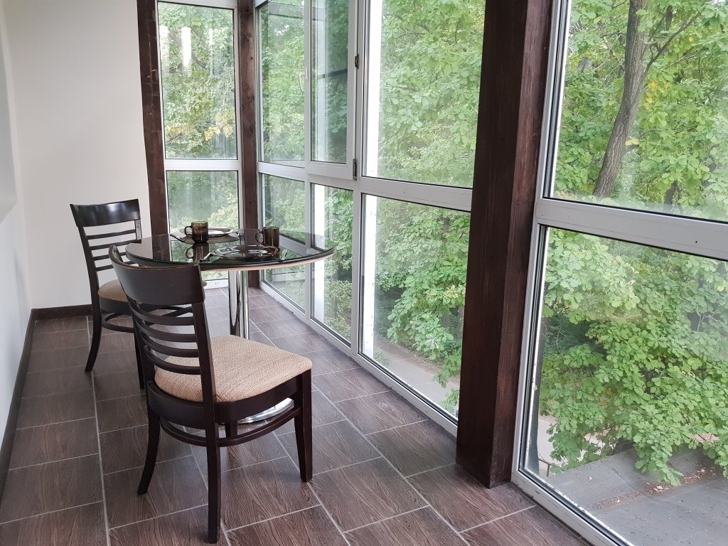 Студия с балконом и с красивым видом из окна