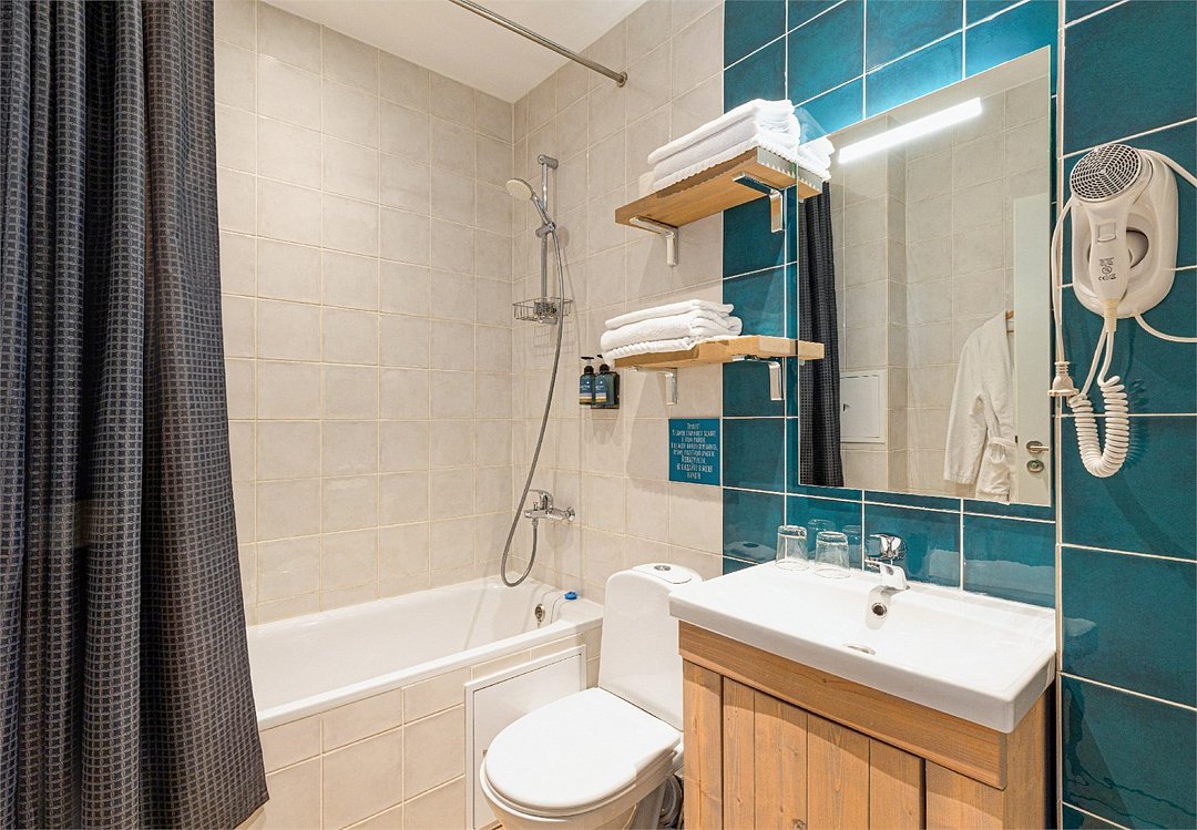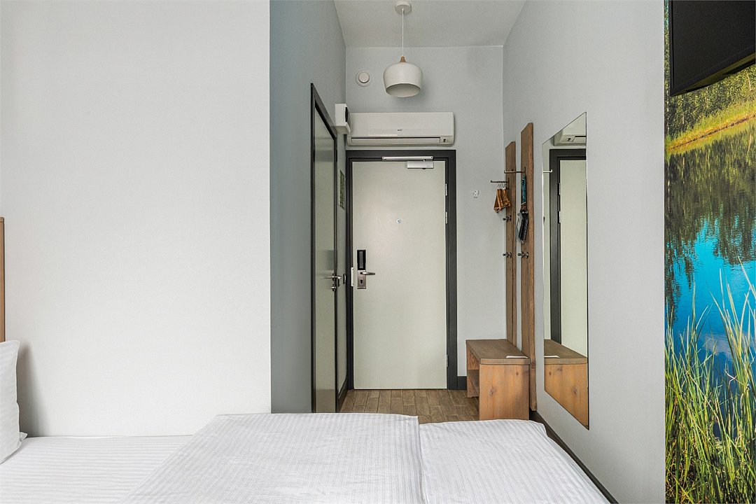 Wi-Fi, кондиционер, фен, электронные замки, халаты, тапочки, две односпальные кровати, зеркало, унитаз, раковина, душ, стул, тумба, туалетные средства, цифровое тв, вешалки-плечики, можно с питомцамиВ номере
