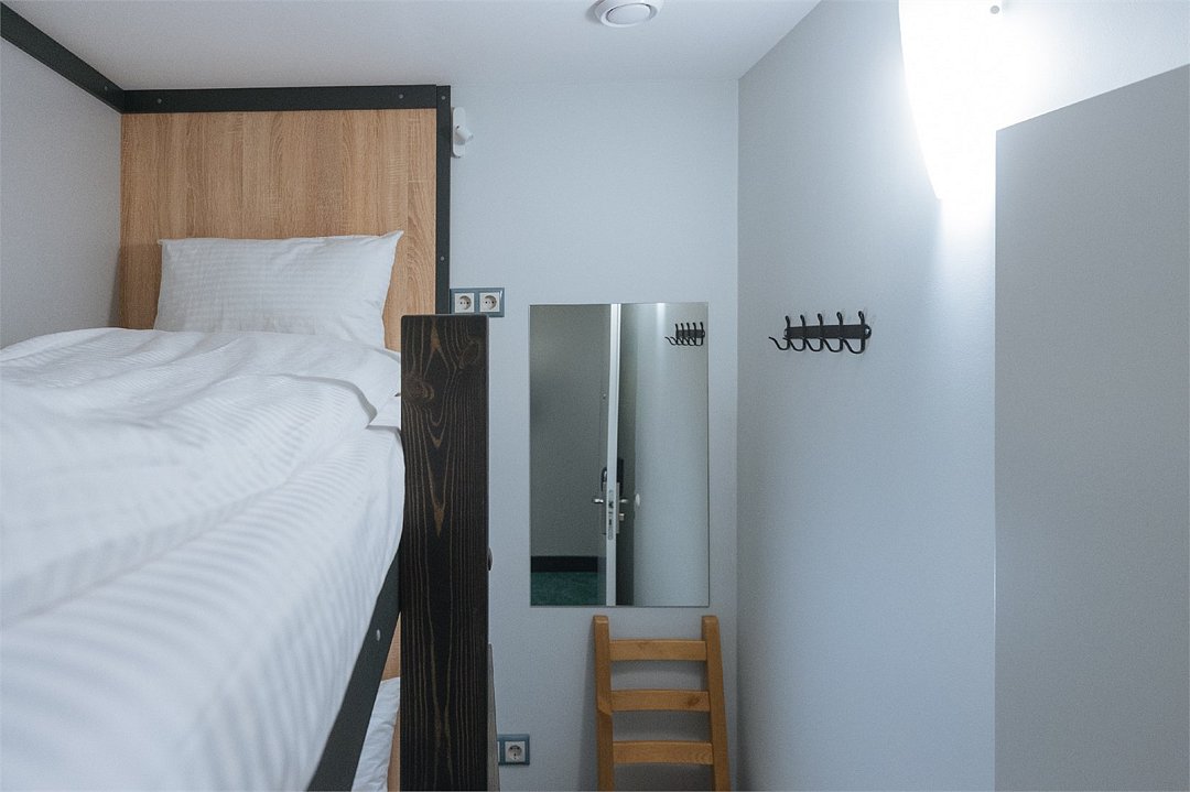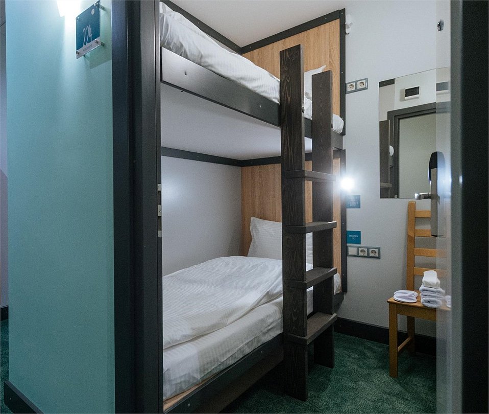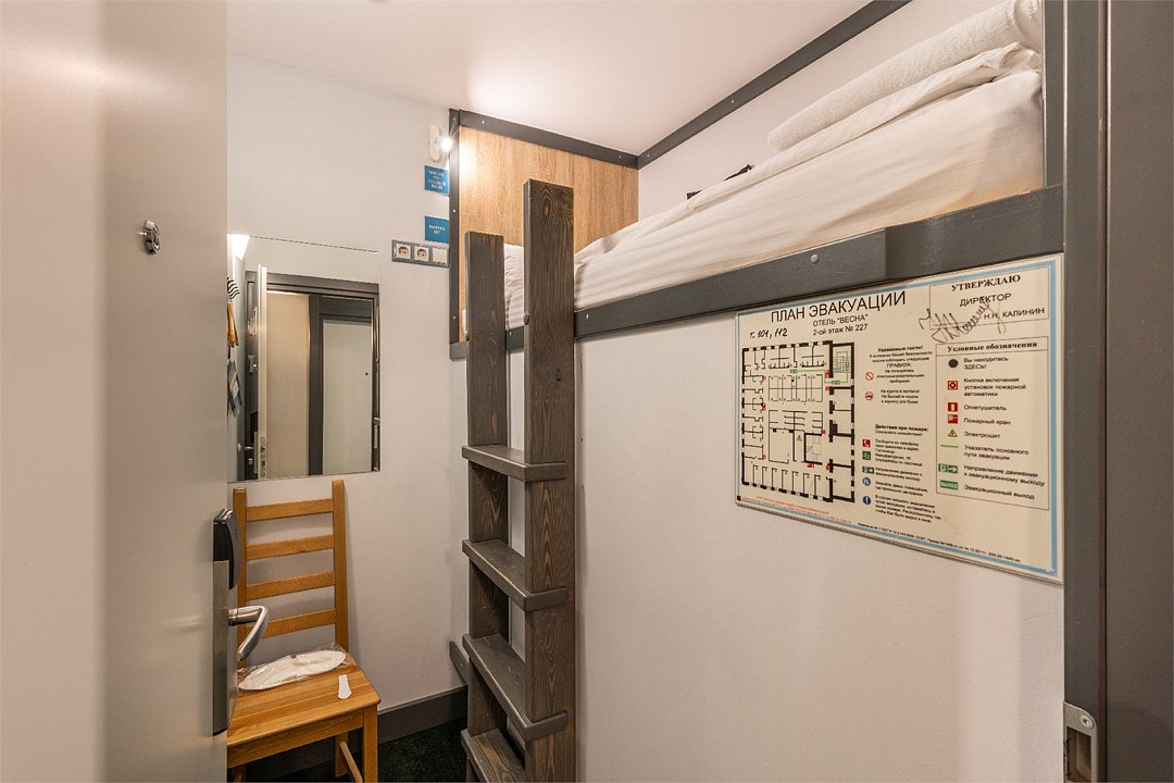 Бюджетный номер без окна с двухуровневой кроватью без санузла. Наш современный Отель оборудован комфортными пространствами для общего пользования. В распоряжении гостей: душевые и туалетные комнаты, кухня и прачечная.Услуги и удобства