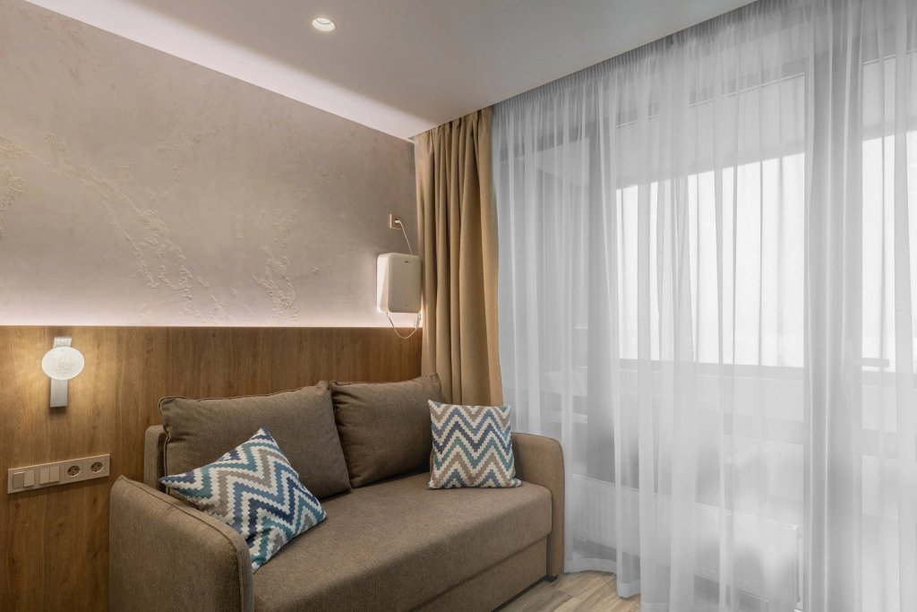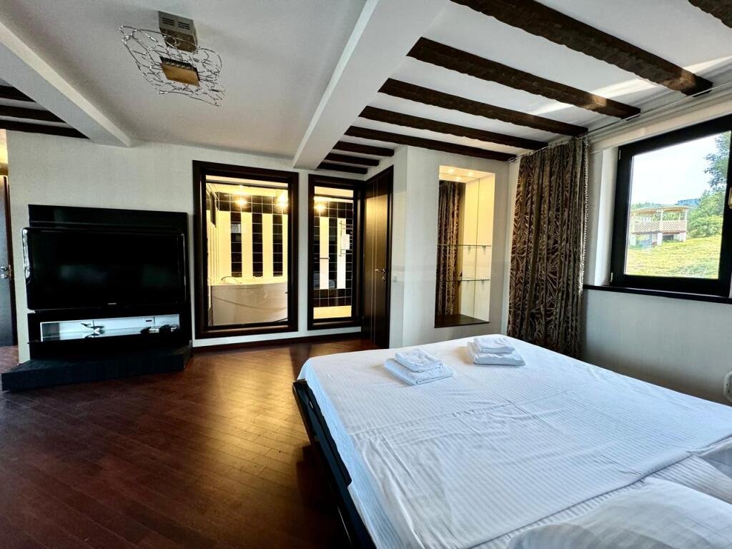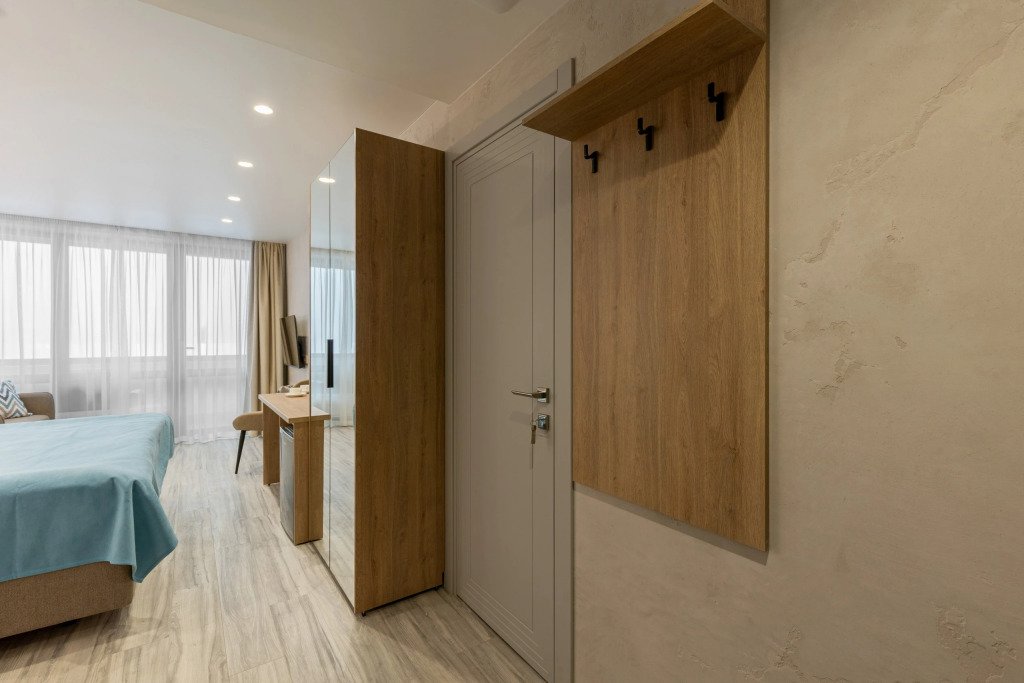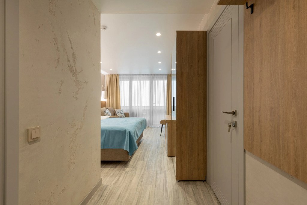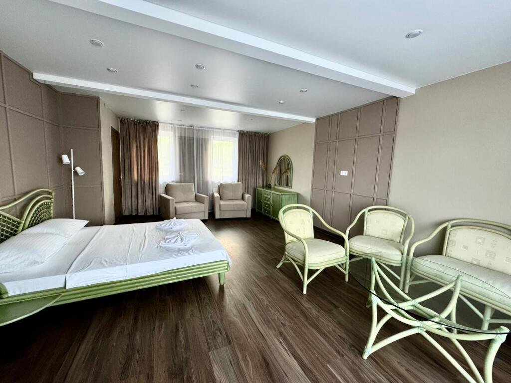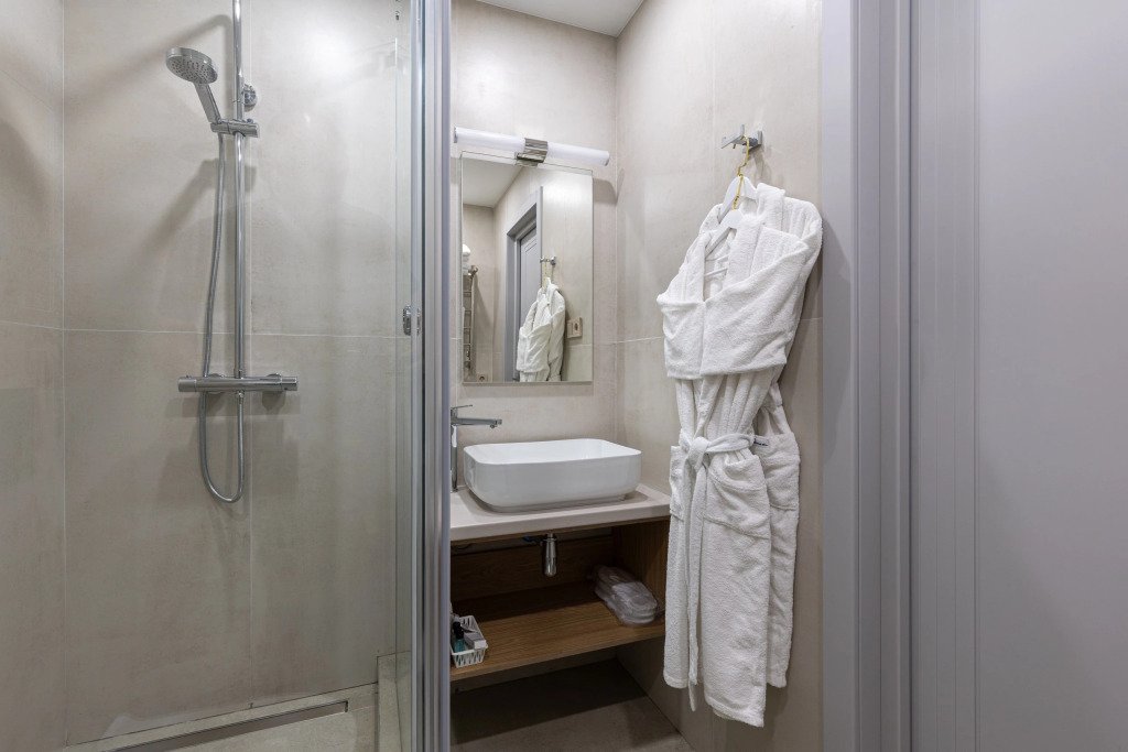Номер уютно обставлен и оснащён необходимым, чтобы отдохнуть после долгого и насыщенного дня. Имеются телевизор и халат. Перечисленные услуги есть не во всех номерах.