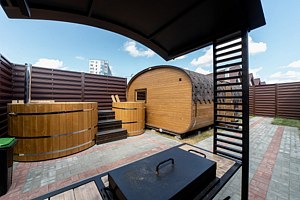 Акция: при аренде и домика и бани — горячий чан в подарок!