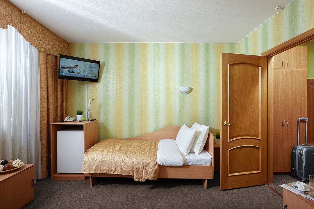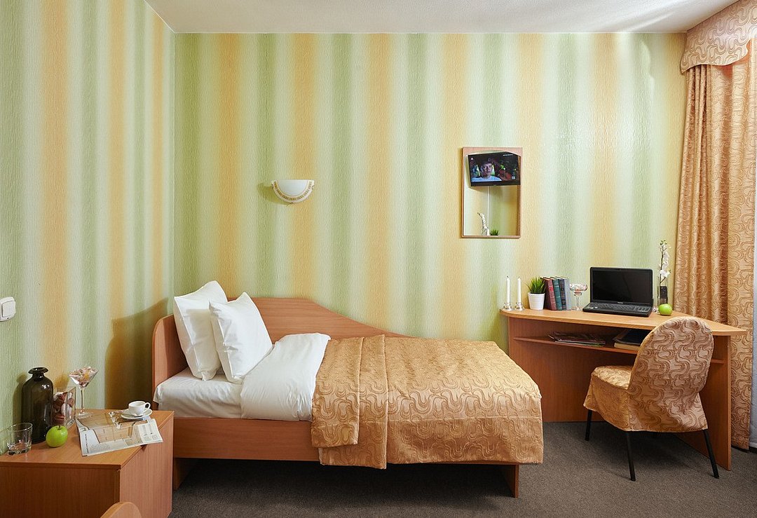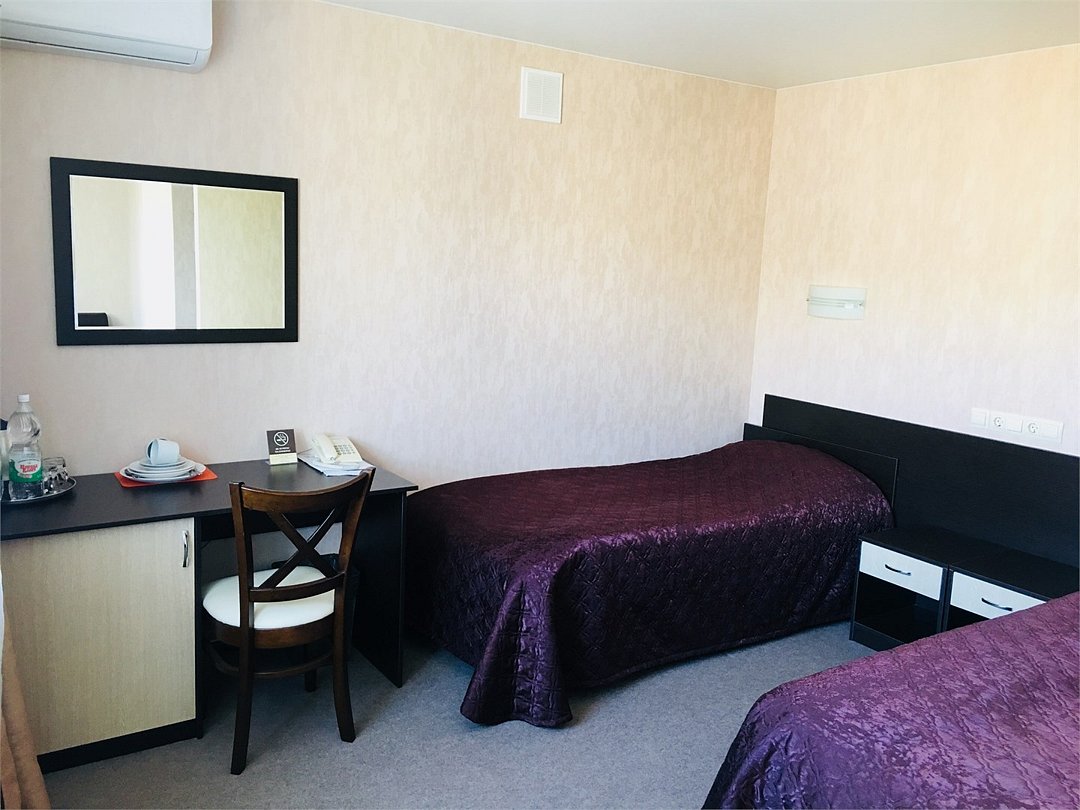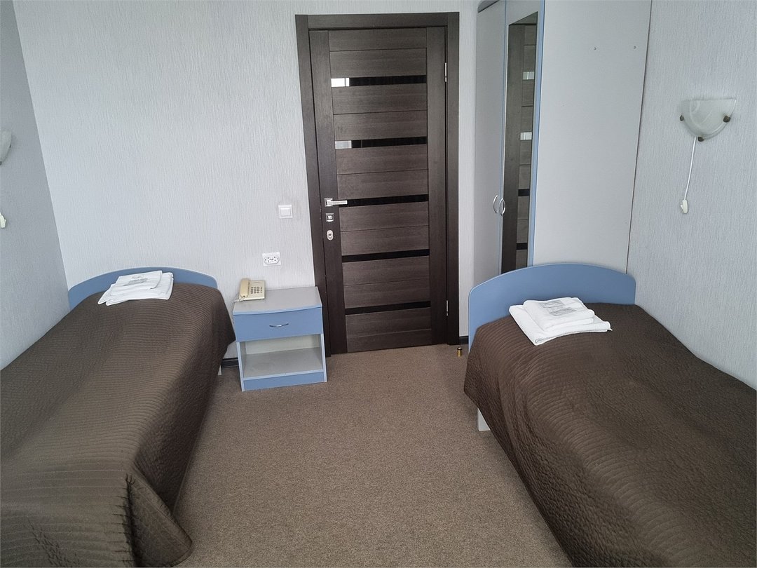 Уютные номера категории "Стандарт" оснащены всем необходимым. Возможно одно- и двухместное размещение в номерах. В номере: две односпальные кровати или одна большая, кондиционер, встроенный шкаф для одежды, телевизор, wi-fi, холодильник, телефон с выходом в город, ванная комната, банные полотенца, душевые принадлежности.Услуги и удобства