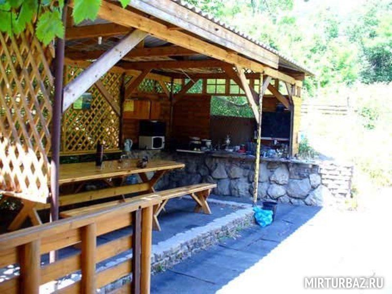 Читать полностьюНастоящая русская банька - основная достопримечательность комплекса отдыха и гордость хозяина усадьбы. Устроенная по всем правилам парная, просторная комната отдыха, уникальная душевая кабина (изобретение хозяина). По границам усадьбы текут две горные речки, создавая естественную границу владениям. В их руслах на территории сделаны небольшие водоемы. Один из них (на фото ниже) - служит купелью для бани. Купель под открытым небом со всех сторон отгорожена от посторонних глаз естественными природными барьерами. На выходе из парной построена беседка с местом для приготовления шашлыка и еды на костре.