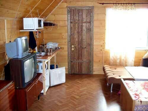 Двухэтажный отдельно стоящий дом оборудован удобной мебелью (имеются двуспальные кровати, диваны, комоды для личных вещей), необходимой техникой и отдельными санузлами (душевые кабинки, туалет, умывальник), отдельно оборудованная кухня (есть газовая плита, холодильник, электрический чайник, необходимый набор посуды). Хозяева предложат вам безупречное свежее белье, номера будут своевременно убраны, а кроме необходимого вы найдете еще массу всяких приятных, радующих глаз, ухо и душу, дополнений.