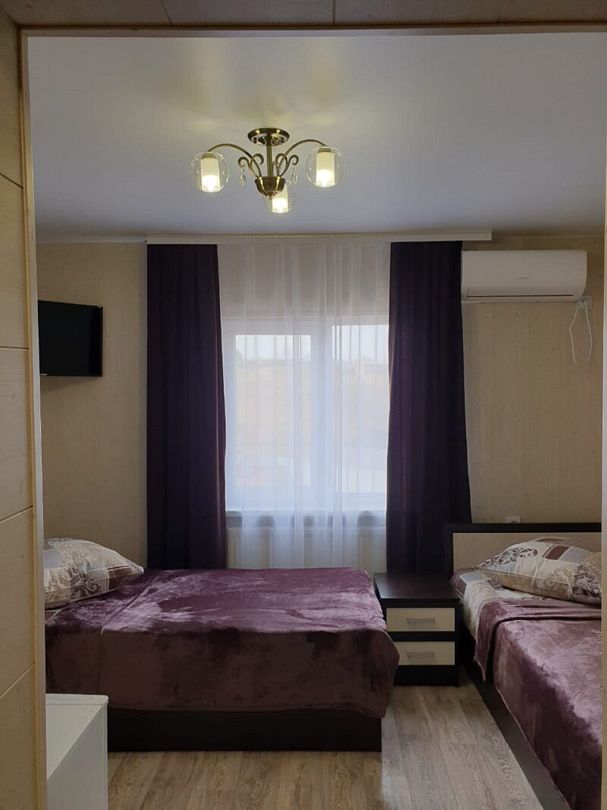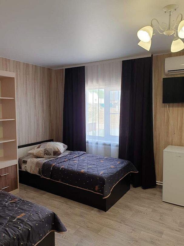 В распоряжении гостей комната с двумя полутораспальными кроватями.