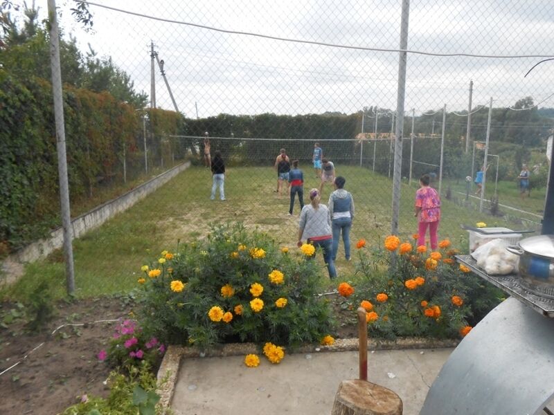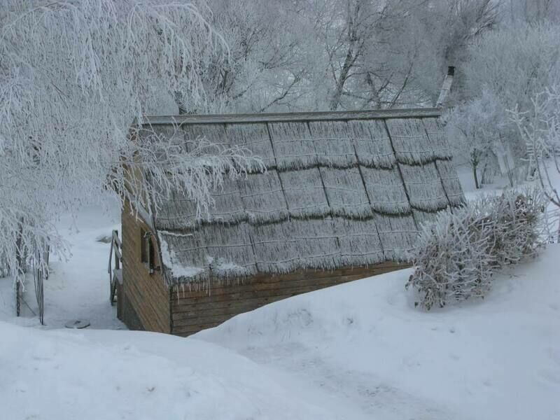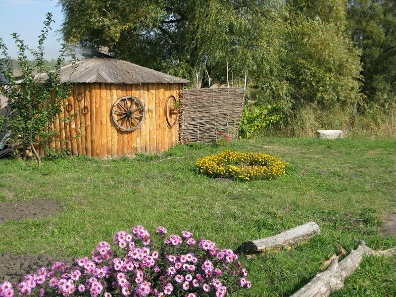 Наша баня по-черному очень необычна…Она сохраняет все традиции старинного способа топки бани: открытый огонь внутри помещения горит 3-4 часа и нагревает тонну камней, затем помещение проветривается, моются полки. Сама баня оформлена деревом с эффектом старины, а на площадке для отдыха расположились самодельные, неуклюжие столы и лавки, как затерявшиеся из прошлого, самовары да лоханки. Площадка имеет выход к речке.