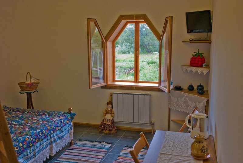 комнаты с теплыми полами и современными санузлами, холодильниками, телевизорами и Wi-fi, в каждом номере есть полати, где с радостью разместятся дети от 5 лет.