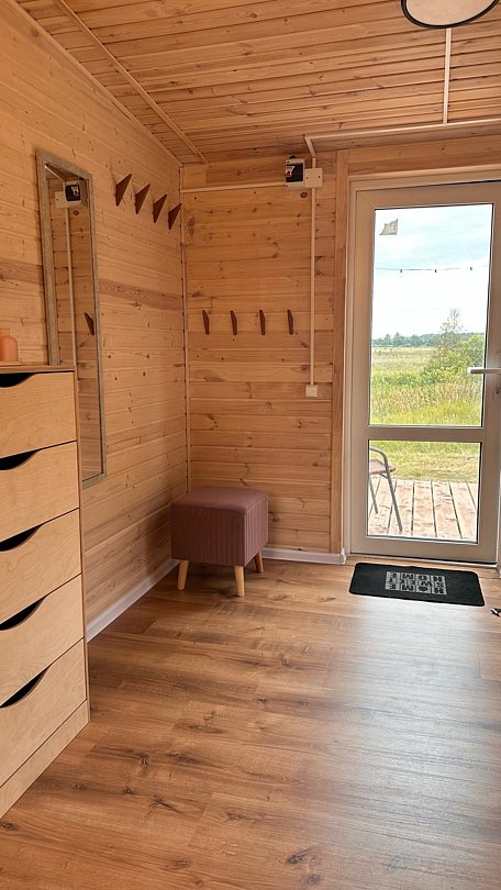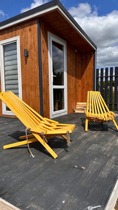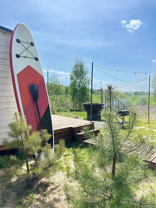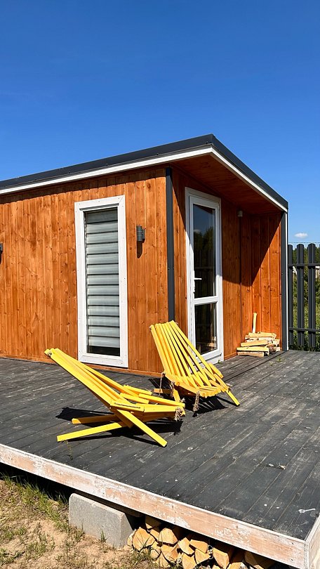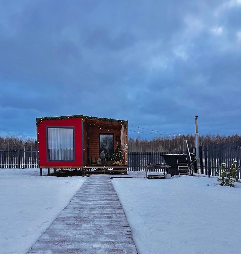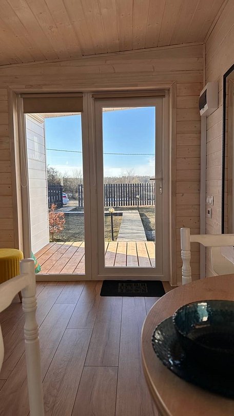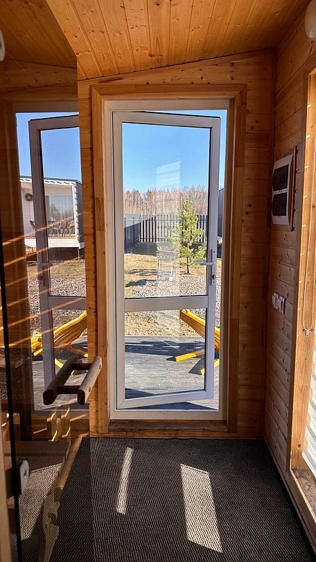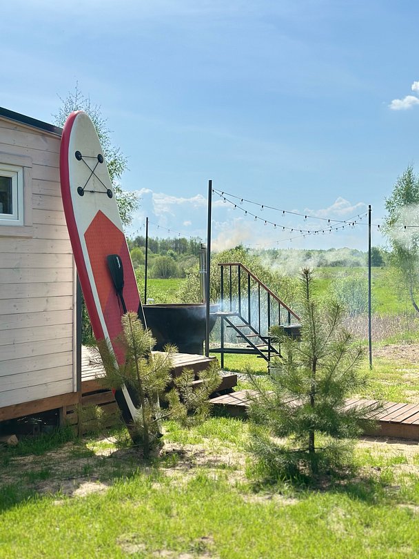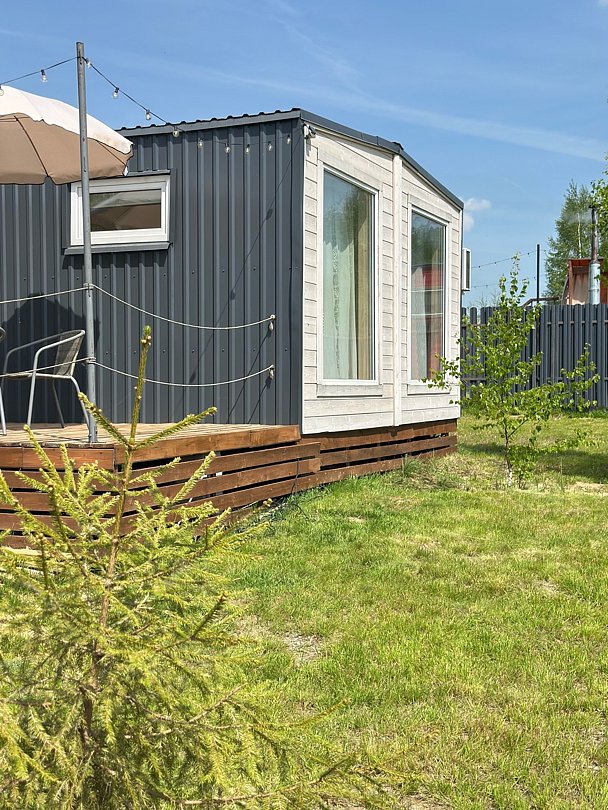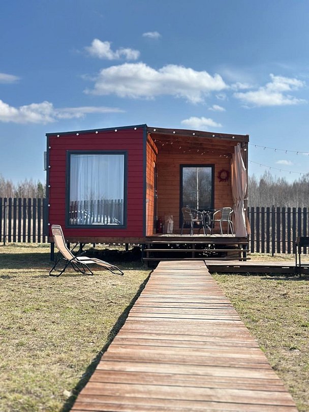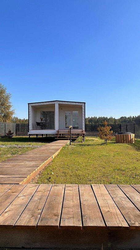 Современные и стильные домики обладают панорамным остеклением, открывающим великолепные виды на загородные пейзажи. Река находится в непосредственной близости — достаточно выйти за калитку и спуститься к берегу.