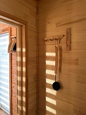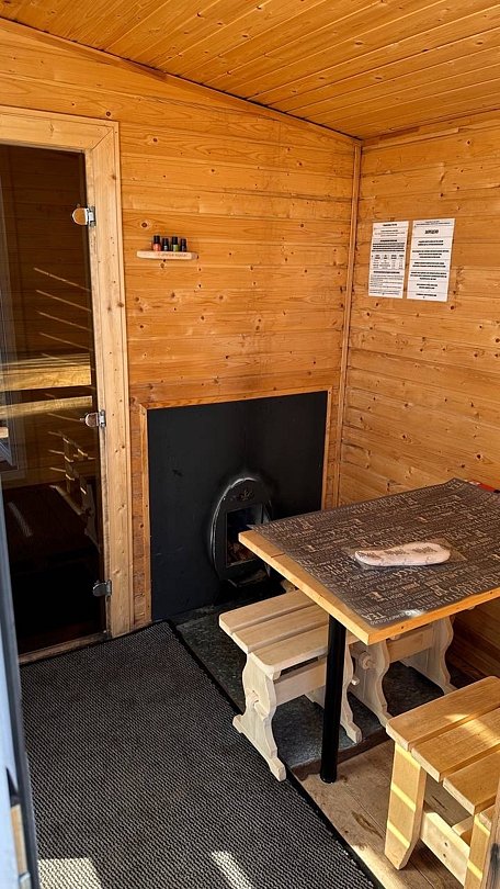 Инфраструктура: тапочки, зона отдыхаБаня на дровах для 4-х человек. В бане есть вcё нeобходимое: парная, зона отдыха, веники, аромомасла, тапочки. Баня сдается только вместе с домиком. Время использования не ограничено