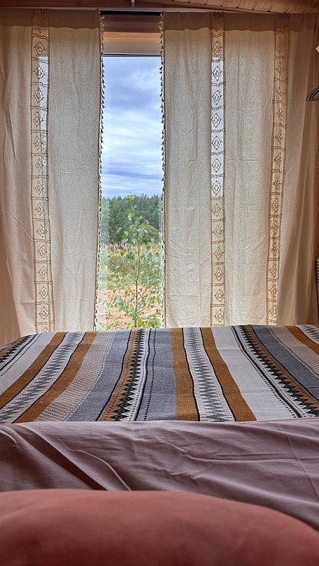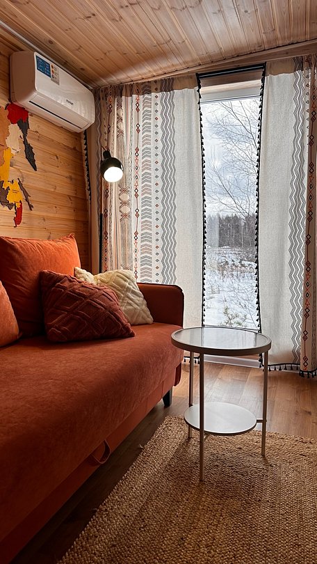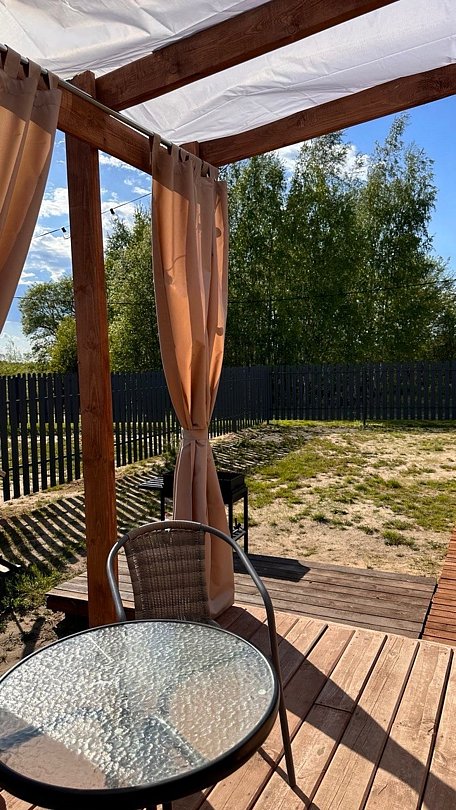 На открытой террасе вас ждёт уютный столик со стульями и тёплые пледы. На территории организована удобная парковка с видеонаблюдением. Постельное бельё и набор полотенец предоставляются.