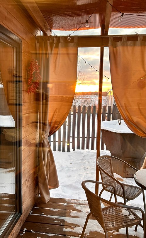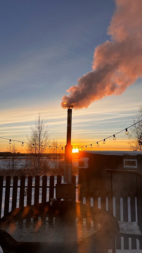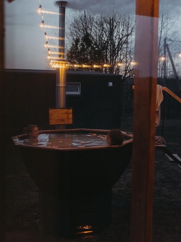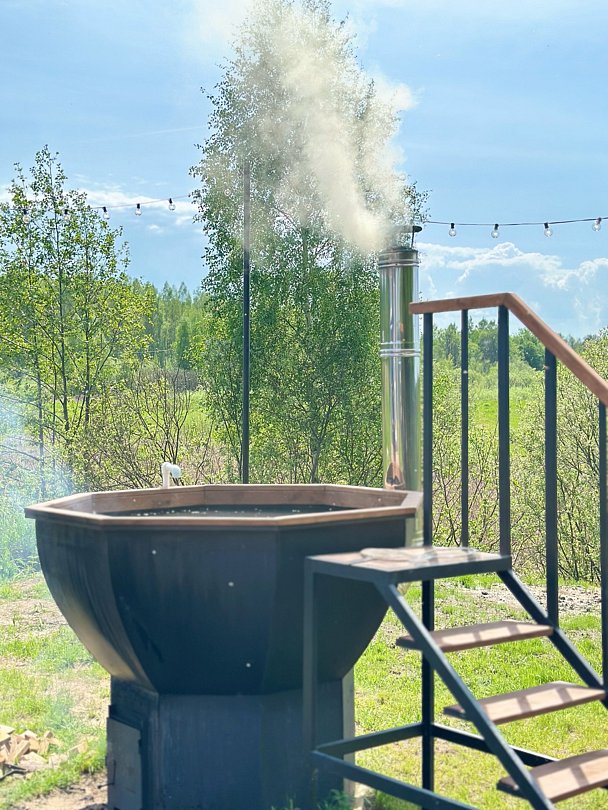 Вместимость до 6 человек. Банный чан арендуется вместе с домом, пользование чаном по времени не ограничено.