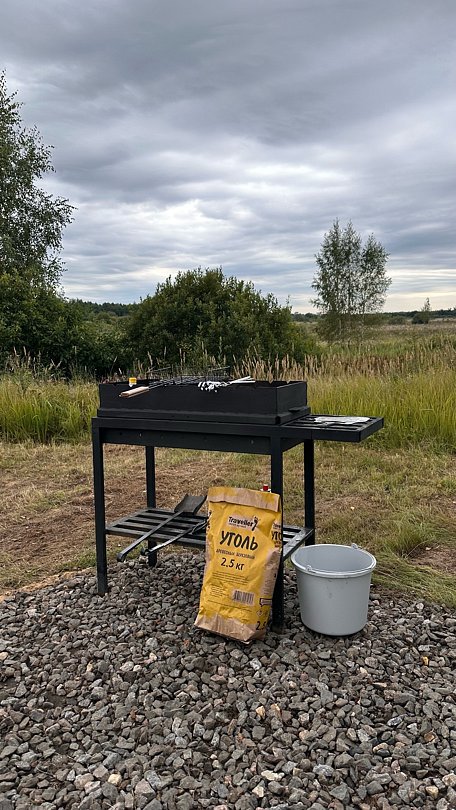 - зона барбекю со всем необходимым: мангал, решетка, розжиг, мешок угля;