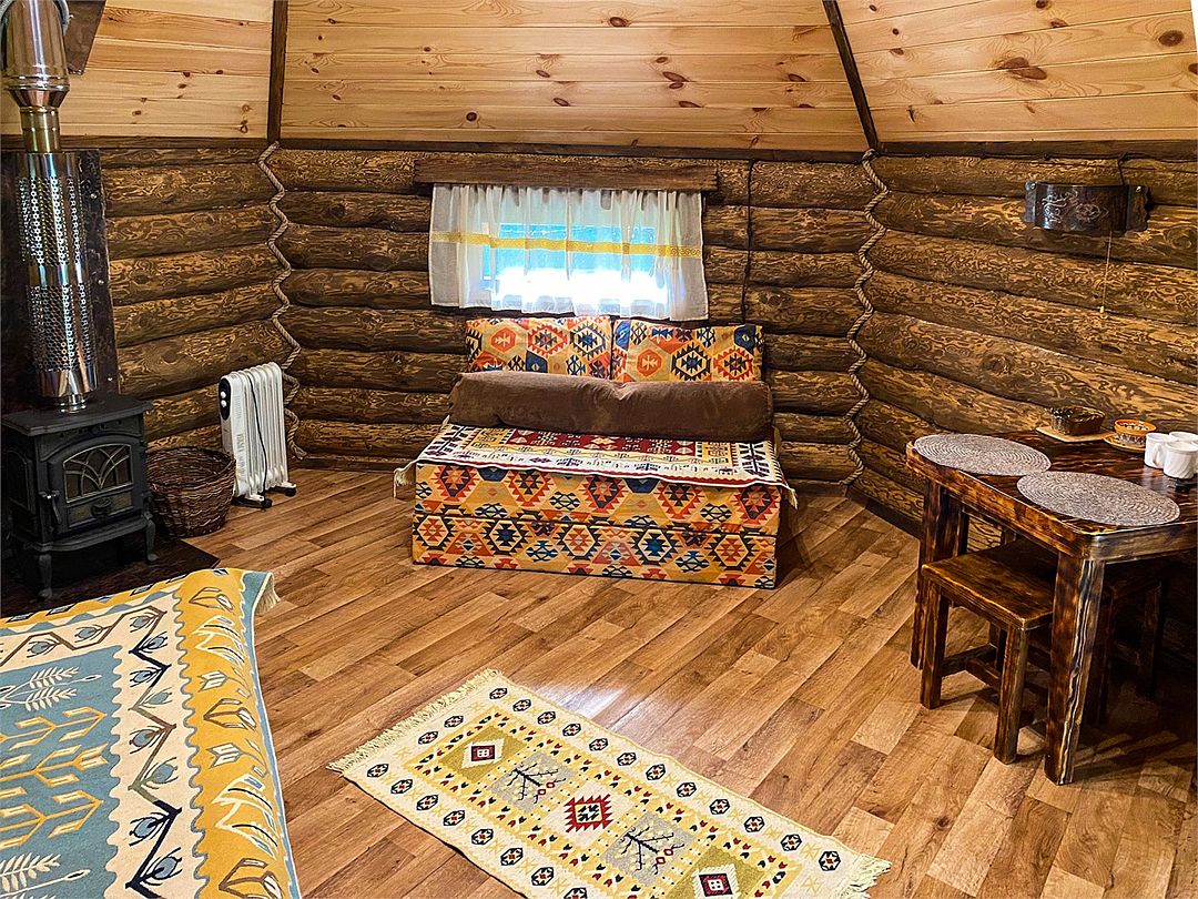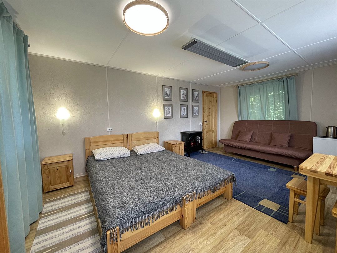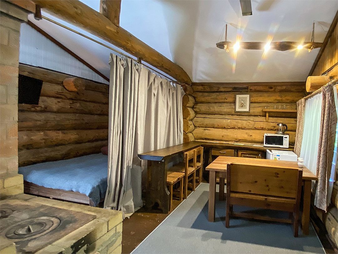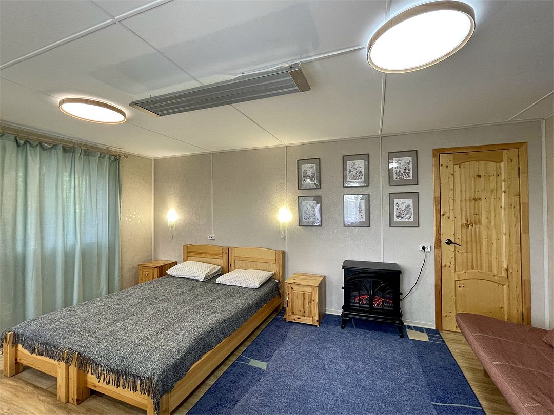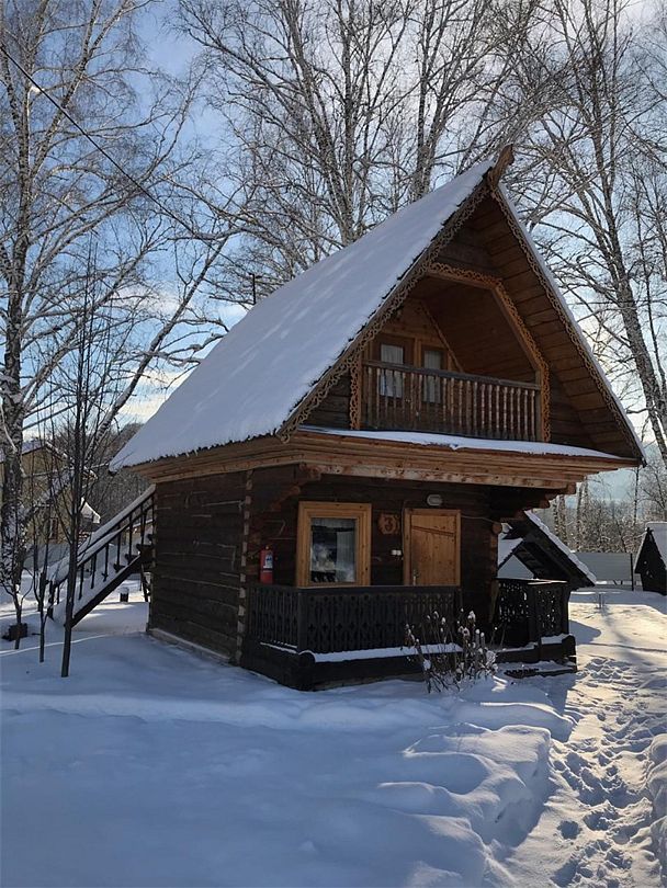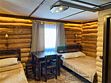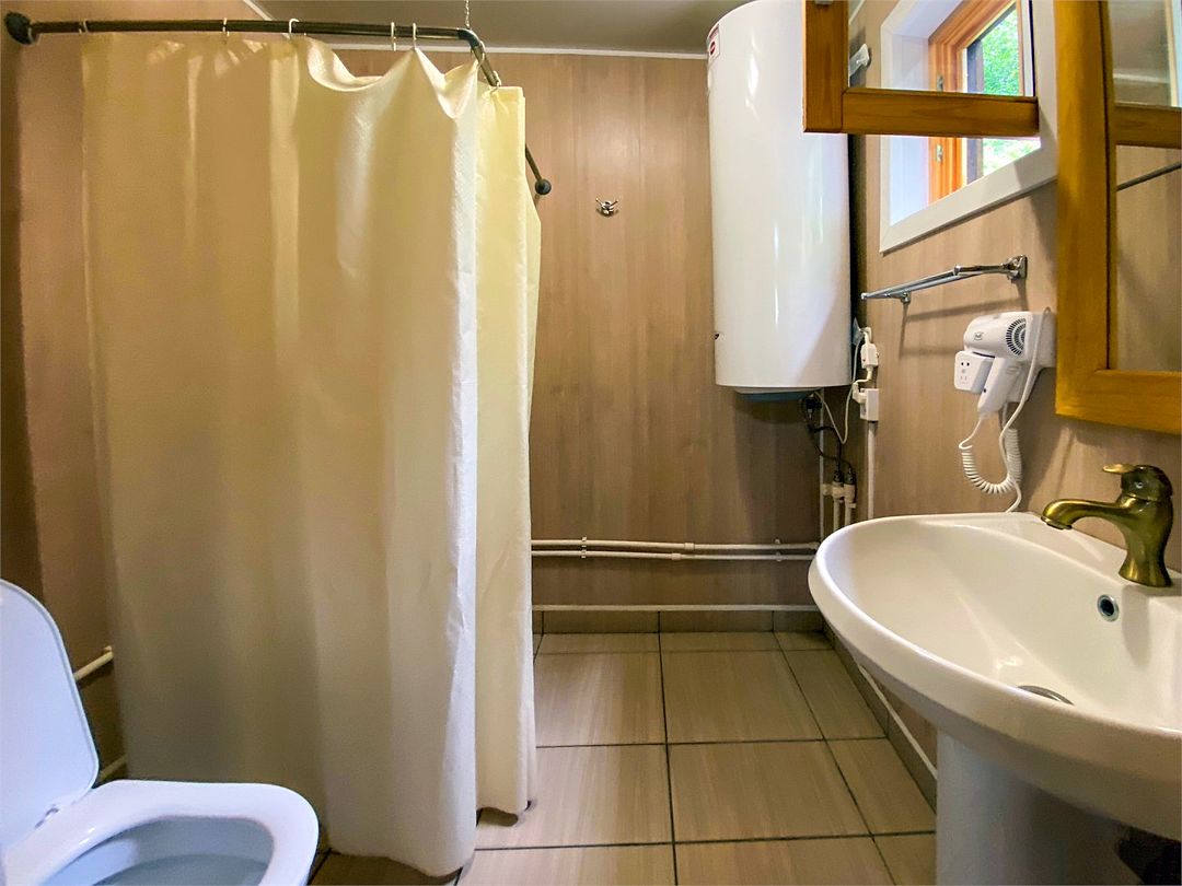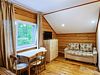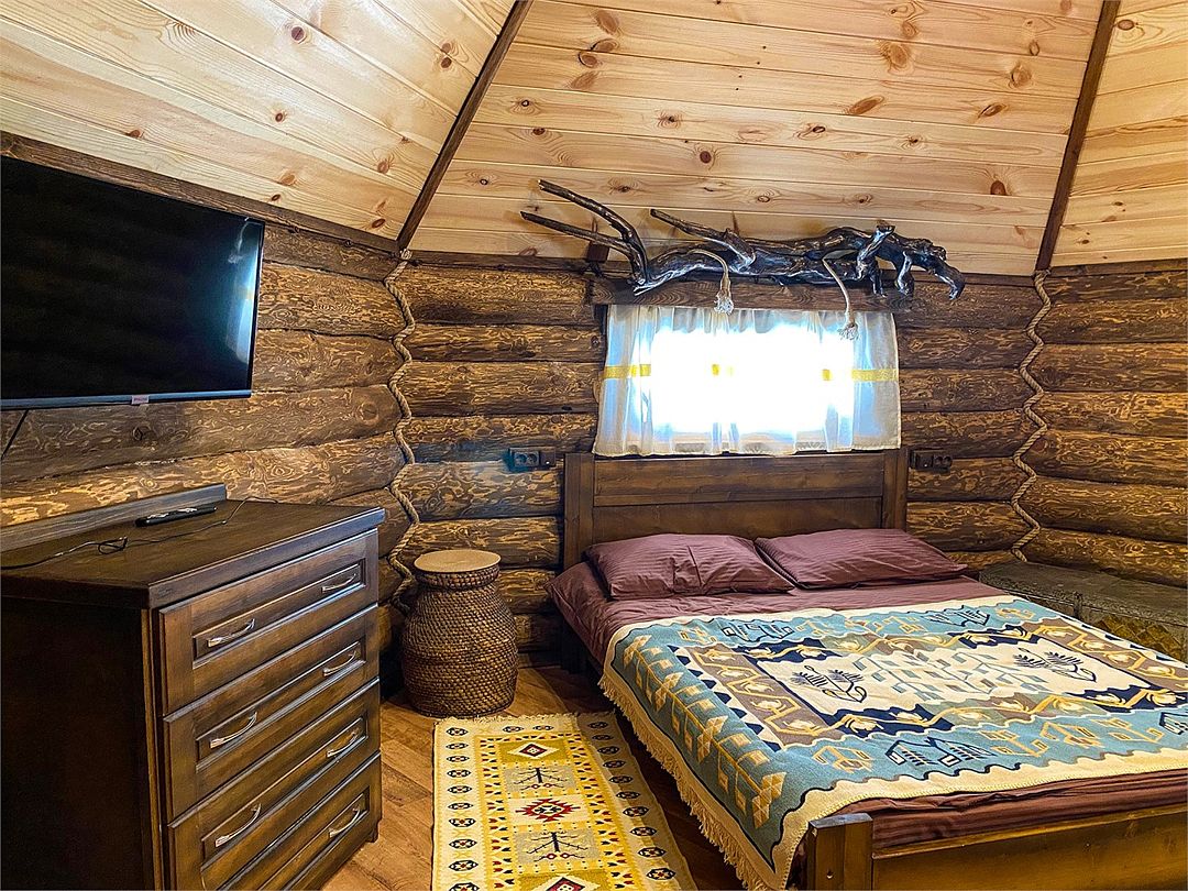 Стандарт 1 категории. Рубленный дом из сосны, отдельно стоящий. Двуспальная кровать, односпальная кровать. Обеденная зона, холодильник, чайник, набор посуды, гардероб. Душ, туалет, г/х вода, фен.