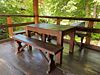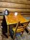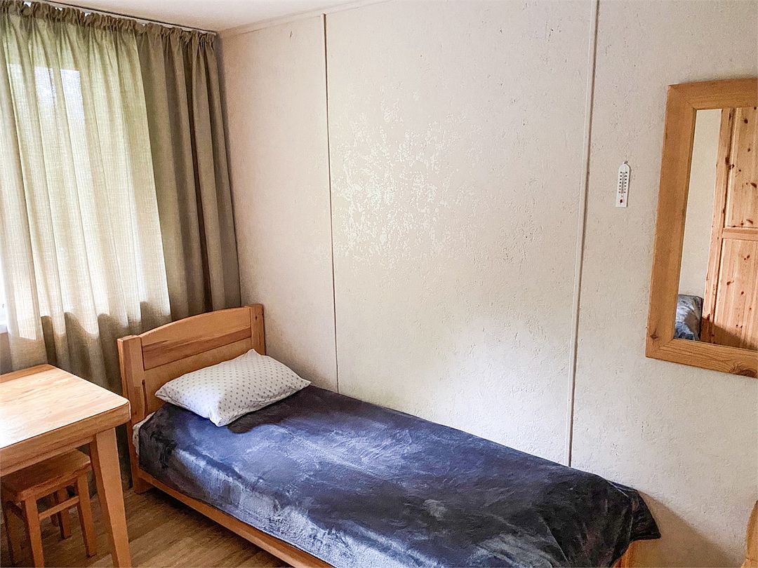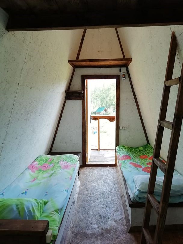 Двухэтажный дом из дерева. 2 этаж, две односпальные кровати, комплект полотенец. Стол, стулья, гардеробная зона. Душ,wc на этаже.
