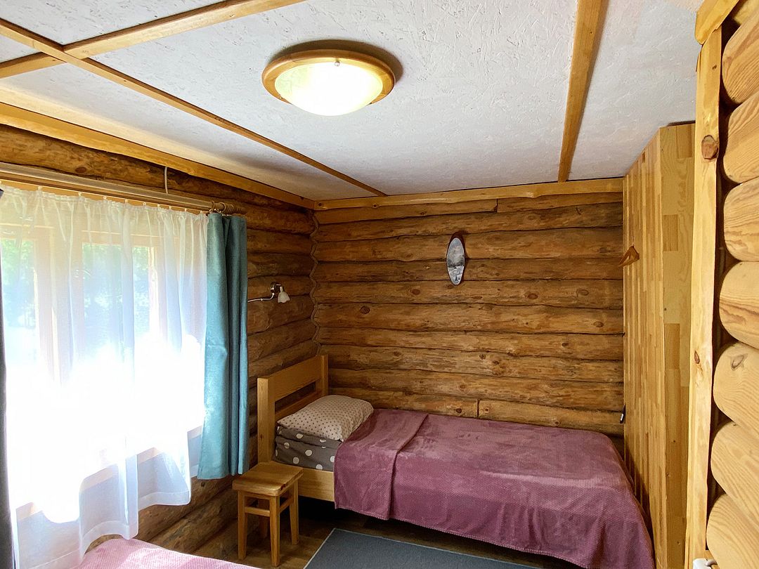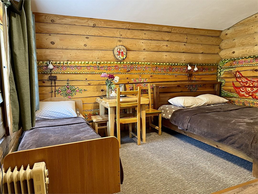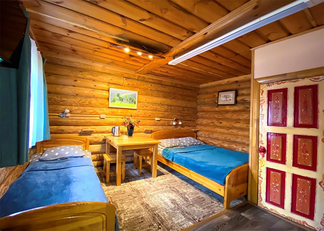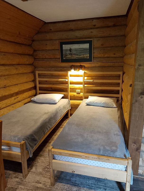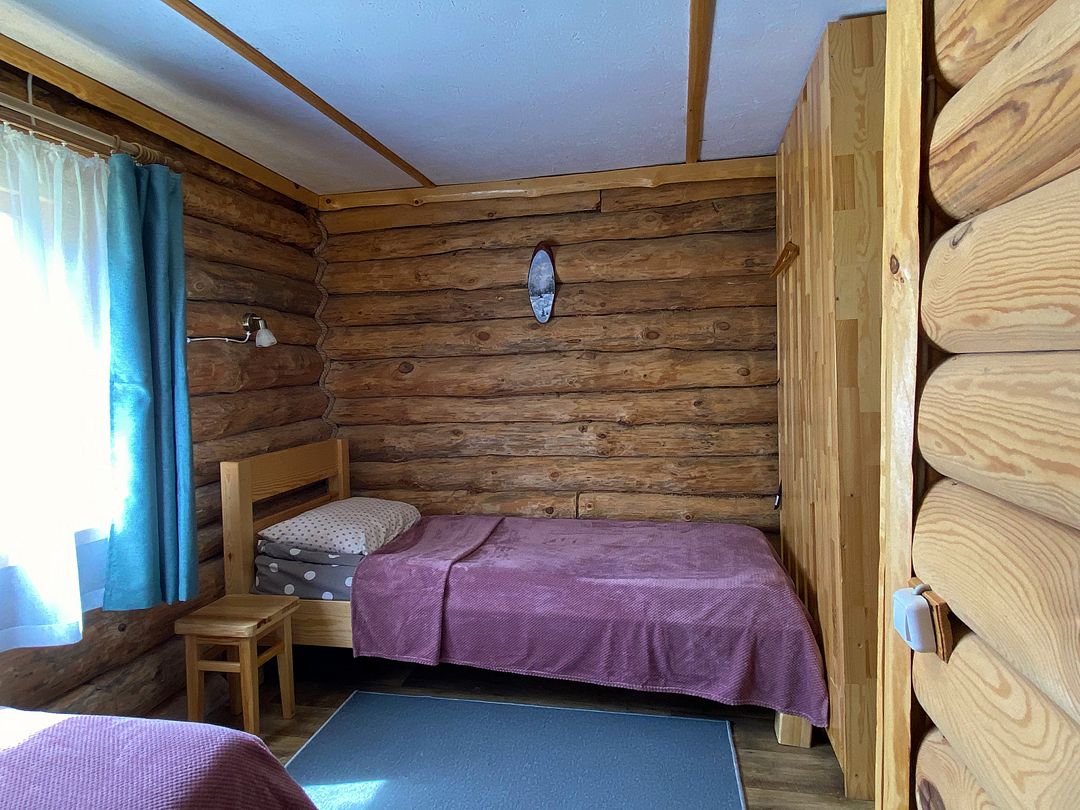 Две односпальные кровати, одна двуспальная кроватьВ срубе