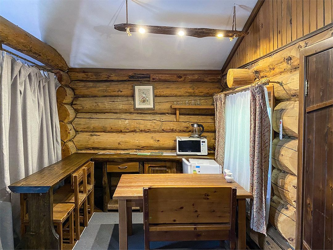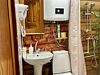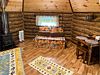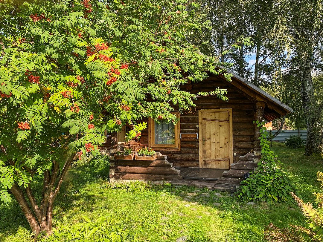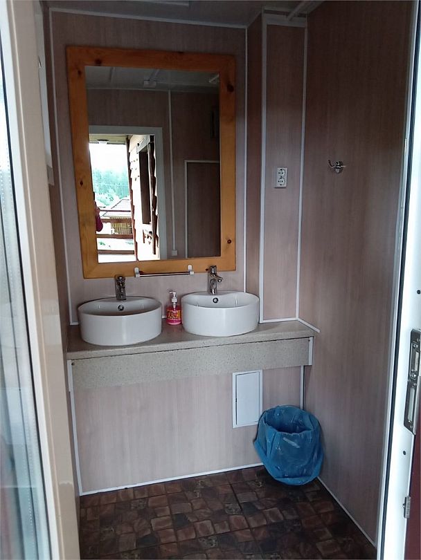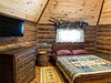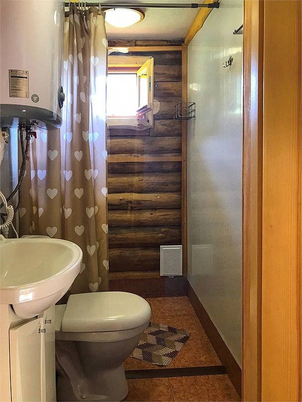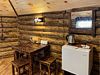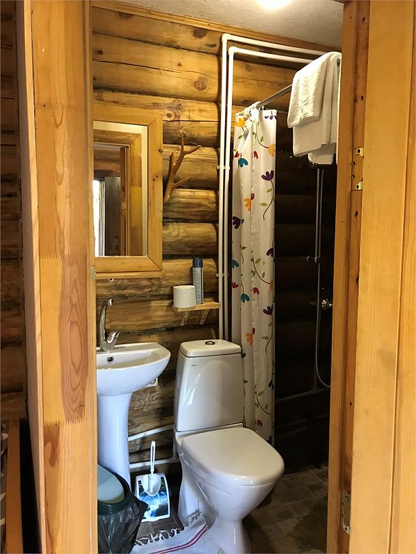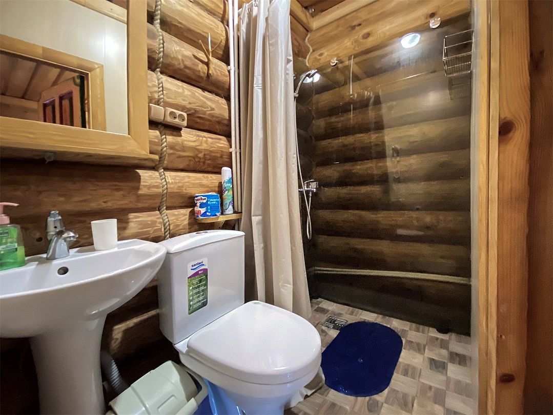 Рубленный дом из сосны, отдельно стоящий. Двуспальная кровать, односпальная кровать. Обеденная зона, холодильник, чайник, набор посуды, гардероб. Душ, туалет, г/х вода, фен.