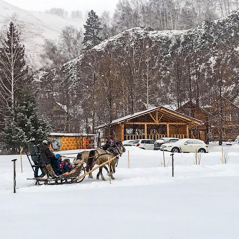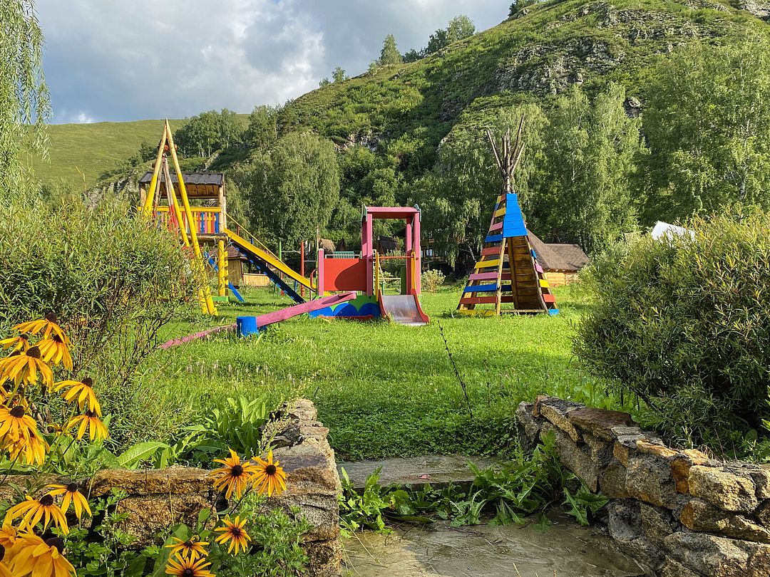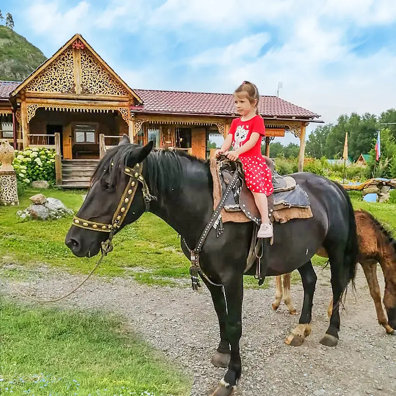 Гостям доступна русская баня с купелью и кедровой фитобочкой. Организуются конные прогулки, катание на квадроциклах и снегоходах. Разнообразить досуг помогут различные мероприятия: выступления алтайских артистов, вечера с гармонистами, выступления народных коллективов и творческие мастер-классы. Для детей имеется игровая площадка.