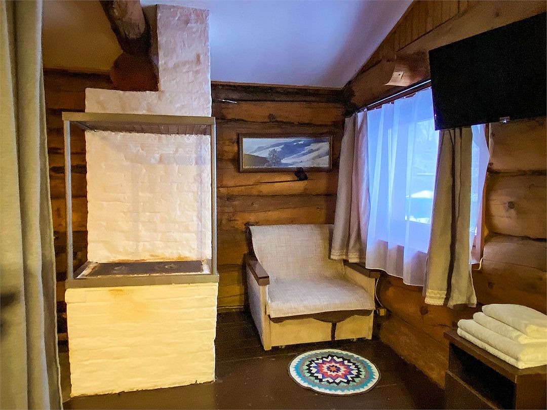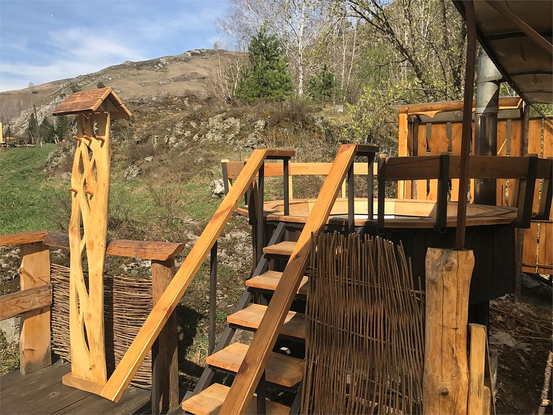 Инфраструктура: купель, чан, зона отдыха, простыни, обливное ведро, дубовые веники, березовые веникиМинимальное время аренды: 2 часаВремя работы: до 23.00Здесь вы сможете ощутить приятный жар русской бани на дровах, освежиться, облившись родниковой водой из ведра-водопада или окунувшись в купель, а также испытать истинное удовольствие в горячем молодильном чане под открытым небом и полностью расслабиться в уединенном месте, вдыхая свежий горный воздух под звуки природы. А травяной ароматный чай и натуральный мед с собственной пасеки дополнят идеальною палитру отдыха.