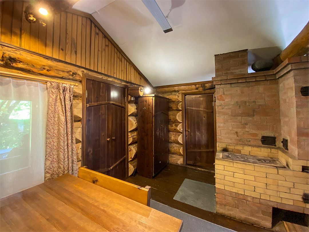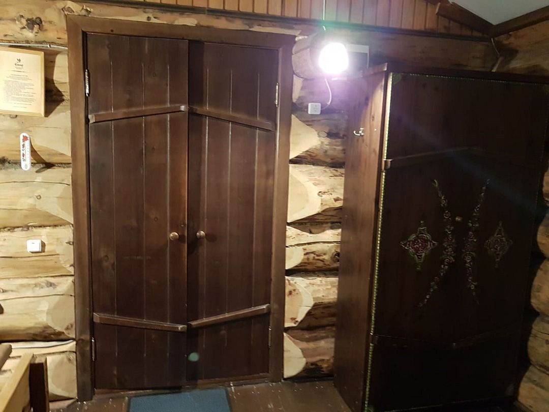 Рубленный дом из сосны, отдельно стоящий. 1 этаж. Двуспальная кровать, односпальная кровать. Обеденная зона, холодильник, чайник, набор посуды, гардероб. Душ, туалет, г/х вода, фен.