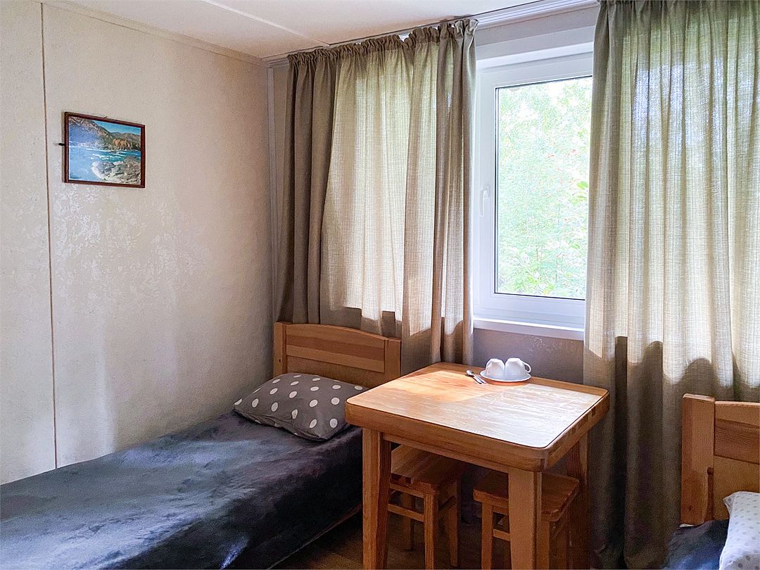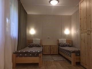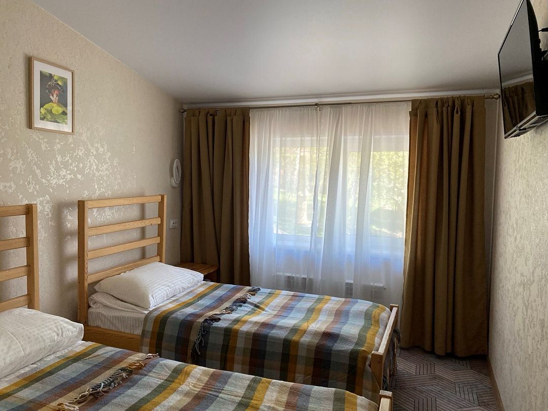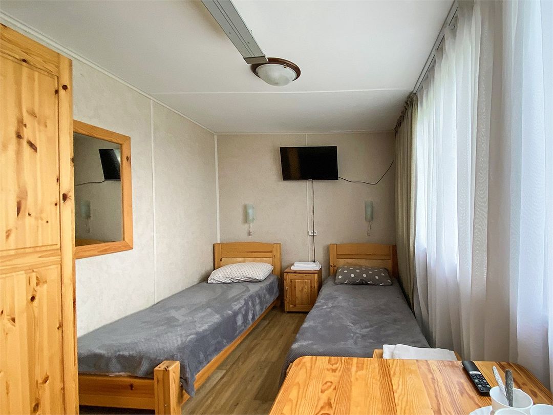 В номере две односпальные кровати, тумбы, комод, гардеробная, шкаф-купе, стулья, стол, обогреватель, Wi-Fi, постельное белье.
