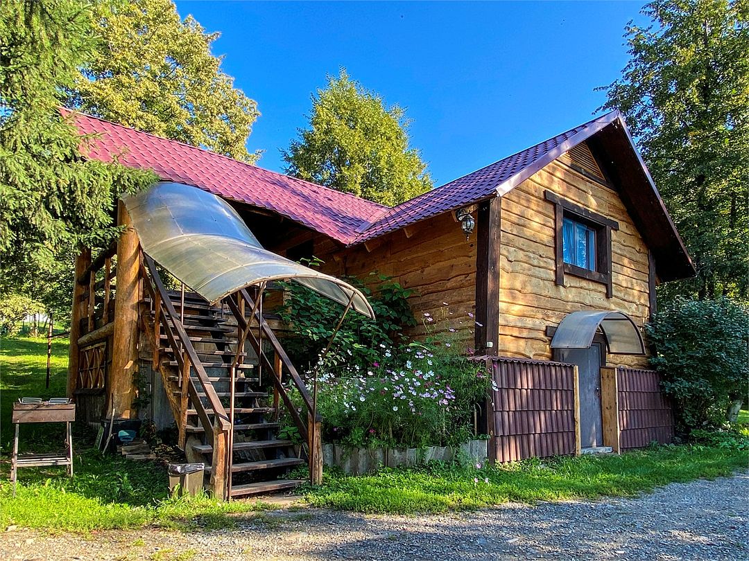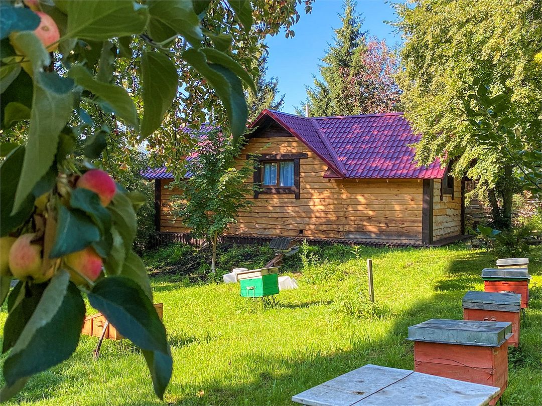 Двухэтажный дом с тремя жилыми комнатами на втором этаже. Рядом пасека, сад и мини-ферма. В доме: кухонный гарнитур, холодильник, микроволновая печь, электрический чайник, набор посуды, столовые приборы, душ, туалет, раковина, фен.