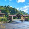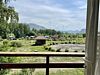 Двухэтажный отдельно стоящий дом из дерева с круговой верандой и панорамным видом на горы. Рядом расположены бассейн, отдельная беседка и зона для барбекю.