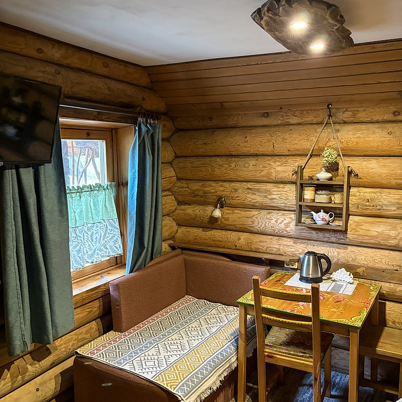 Здесь вы сможете ощутить приятный жар русской бани на дровах, освежиться, облившись родниковой водой из ведра-водопада или окунувшись в купель, а также испытать истинное удовольствие в горячем молодильном чане под открытым небом и полностью расслабиться в уединенном месте, вдыхая свежий горный воздух под звуки природы. А травяной ароматный чай и натуральный мед с собственной пасеки дополнят идеальною палитру отдыха.
