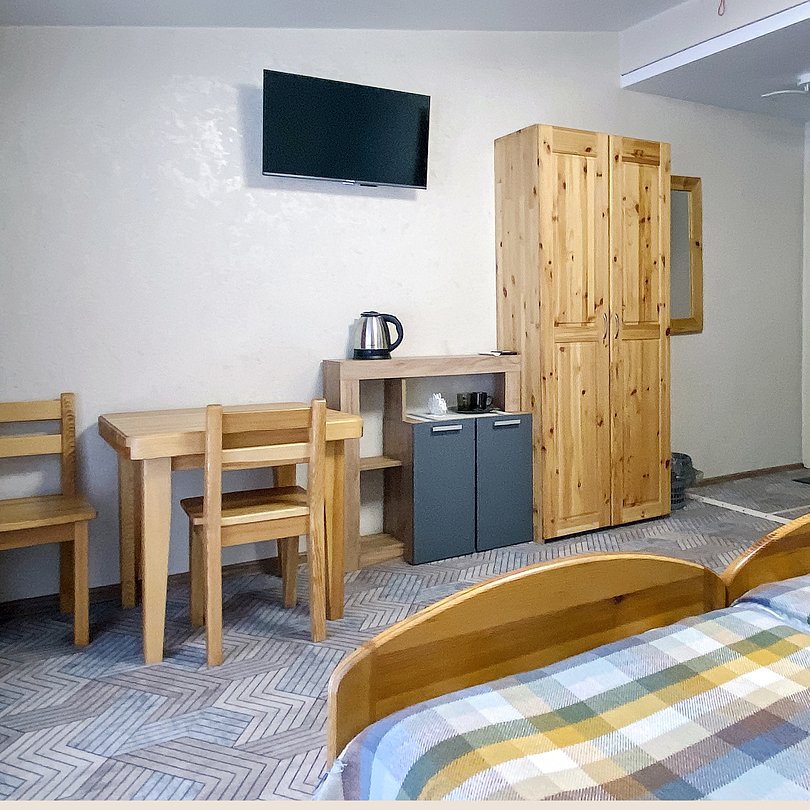 - Техника: TV с плоским экраном, мини-холодильник, эл.чайник, фен, водонагреватель, обогреватель;