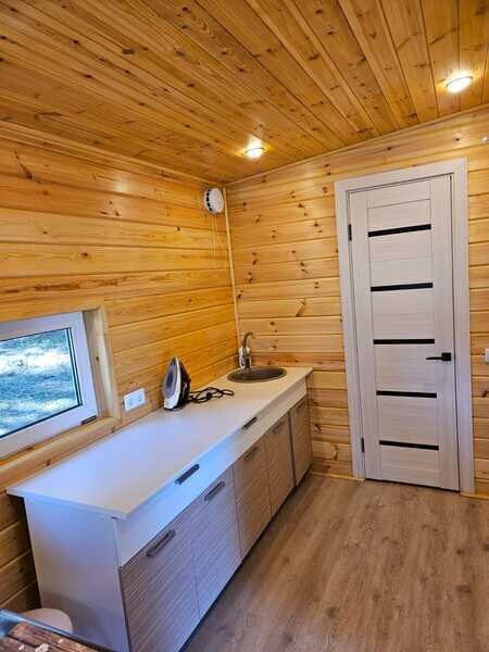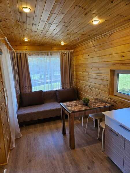 Одна двуспальная кровать, одна диван-кроватьВ мини-доме