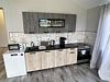Кухонная зона со всеми принадлежностями для приготовления пищи.