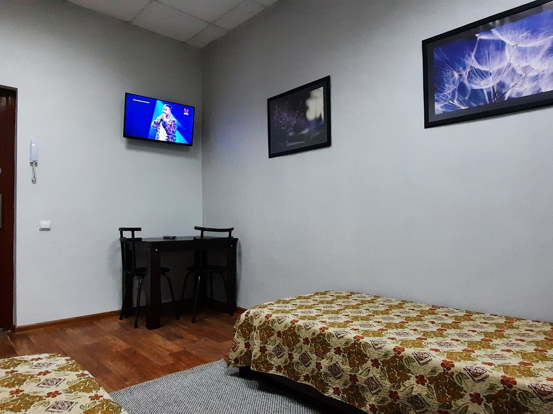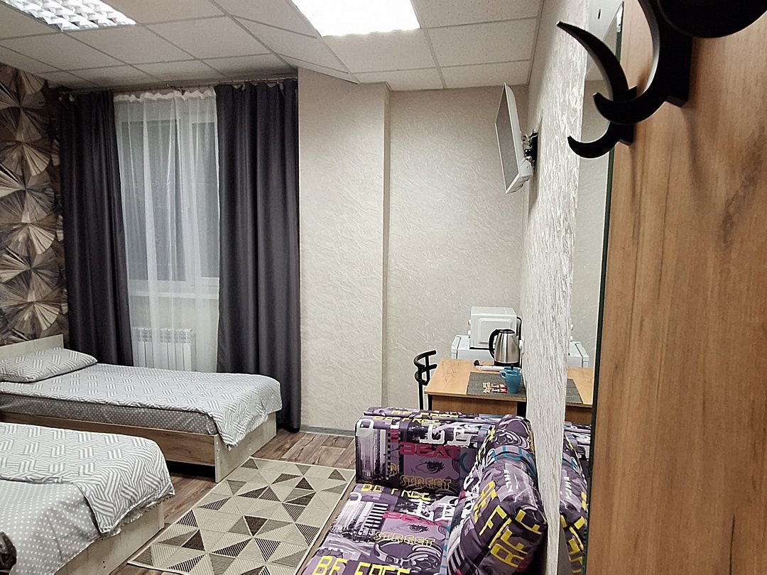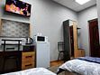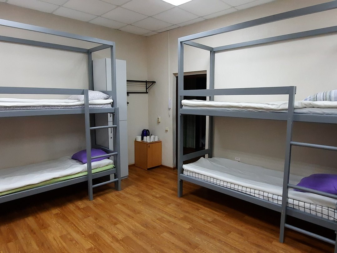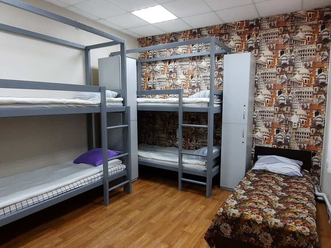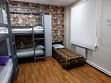 Однокомнатный номер (хостел) смешанного размещения с подселением без балкона. Три двухярусных кровати, прикроватные шкафчики для каждого гостя, вешалка для одежды, стол, телевизор, холодильник, электрический чайник, микроволновка. Душевая и туалетная комнаты на этаже.В номере