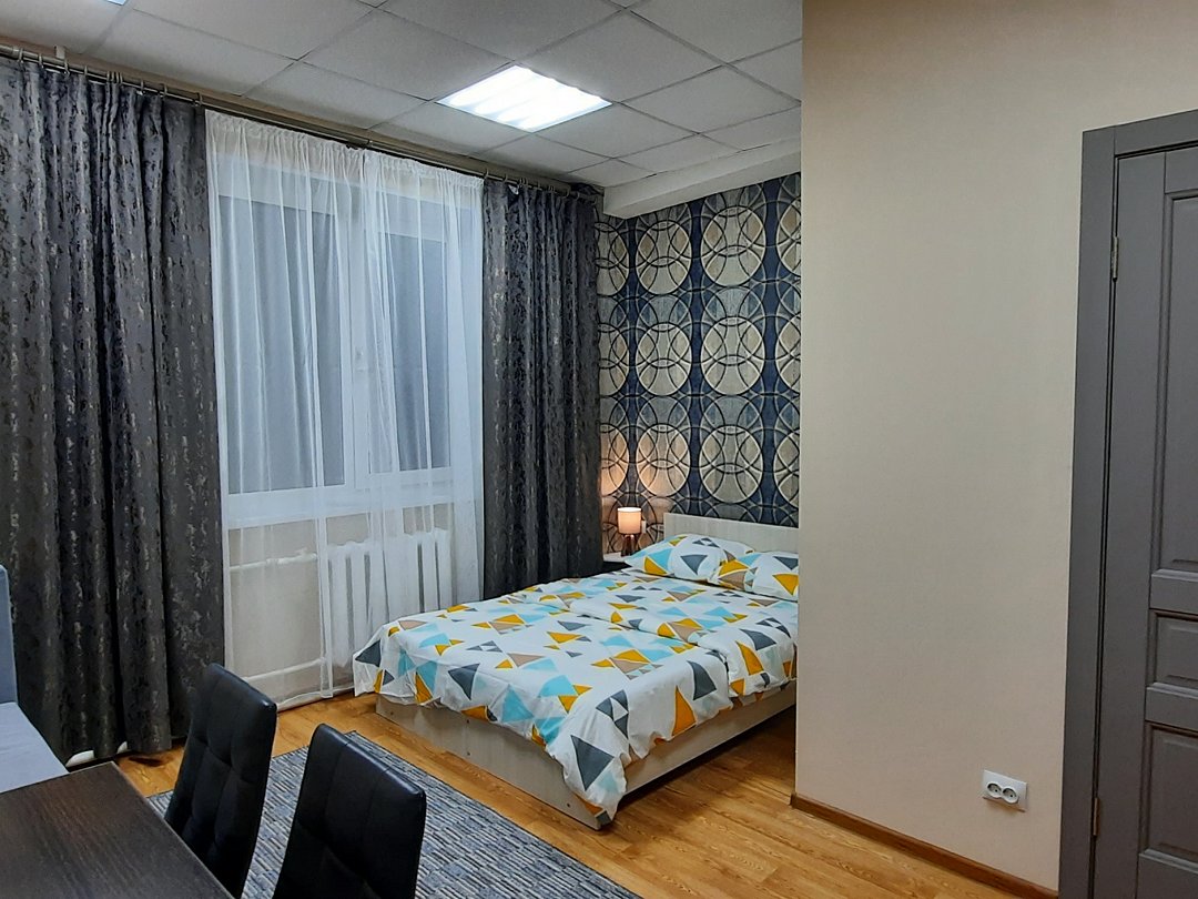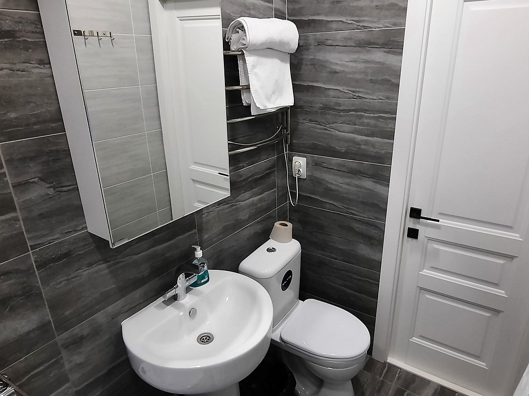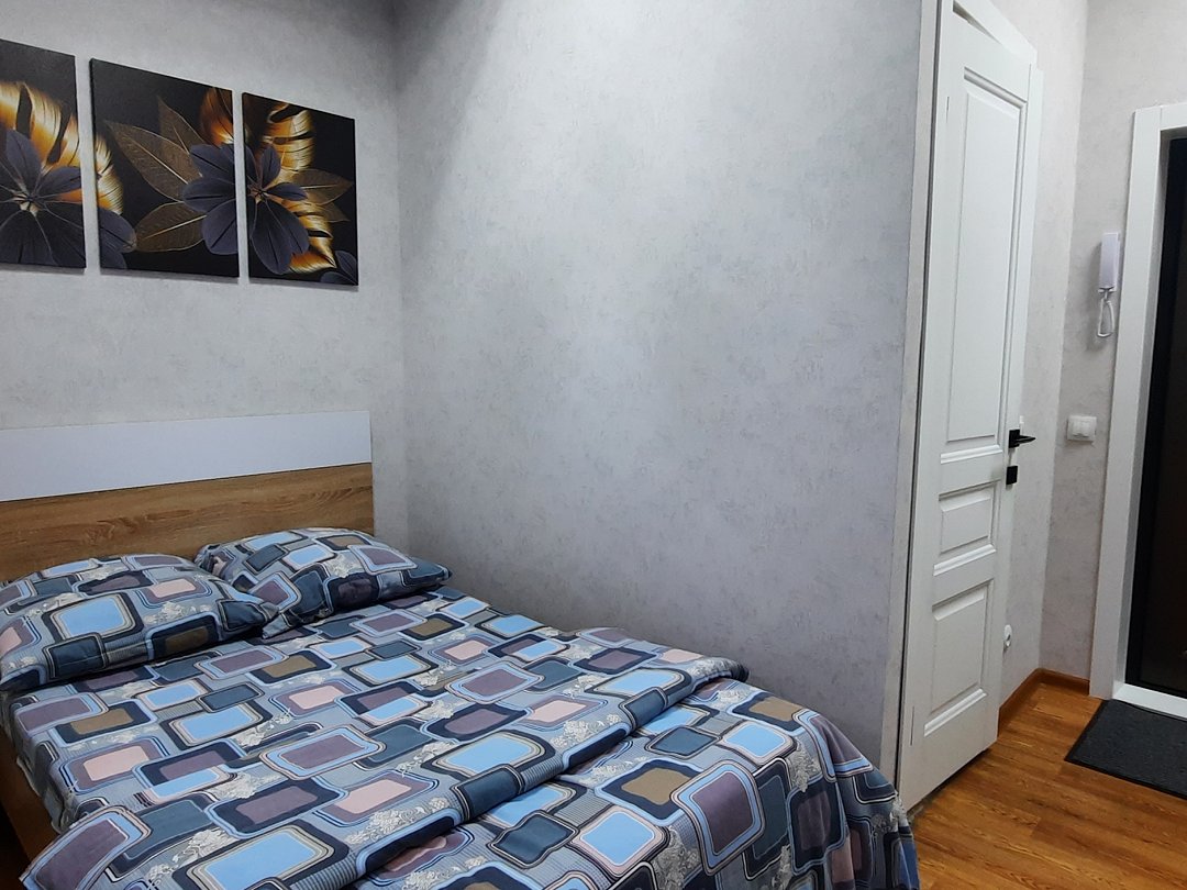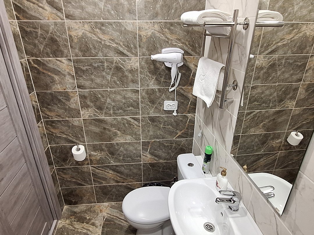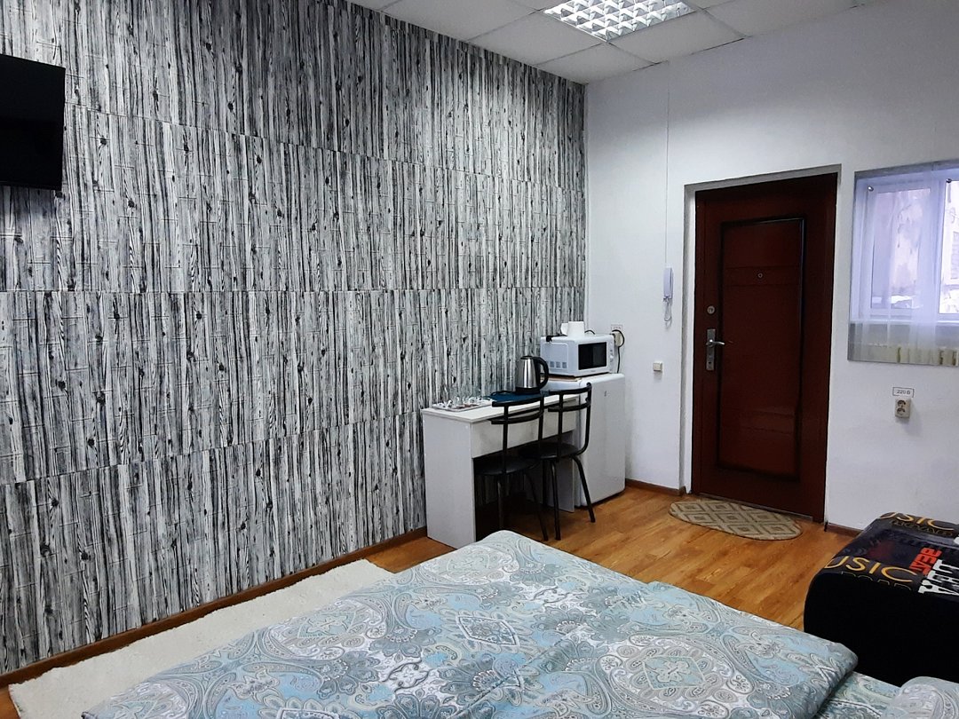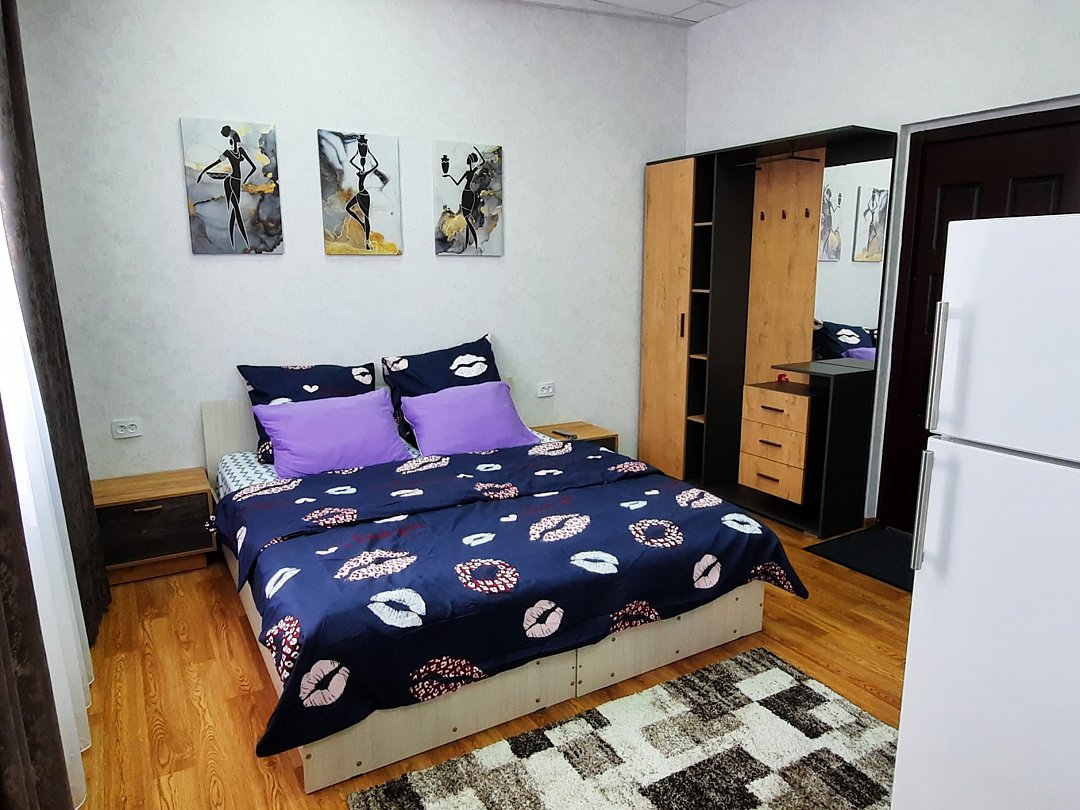 Уютный, двухместный, однокомнатный номер без балкона с кухней, двуспальная кровать с прикроватными тумбочками, шкаф, стол. Kухня укoмплeктованa нeoбхoдимой поcудой и куxонными пpинaдлежноcтями. Cовpеменная мебель и бытовая техника: жк телевизор, холодильник, микроволновка, эл.чайник. Современная ванная комната, полотенца, тапочки.В номере
