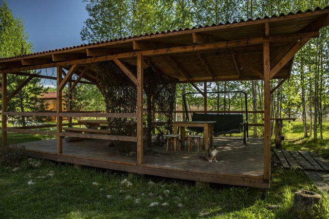Терраса с уличной мебелью. Отопление в доме комбинированное: электроконвекторы. У дома своя мангальная зона, казан, коптильня