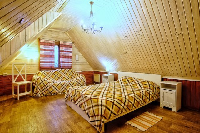 - спальня-гостиная с 2-х спальным диваном, печь-камин, спутниковое телевидение.