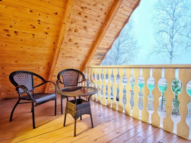1-этажный рубленный дом в стиле шале, расположен в 15-20 метрах от воды, из окон открывается вид на озеро, пригоден для круглогодичного проживания, вместимость 4 человека.