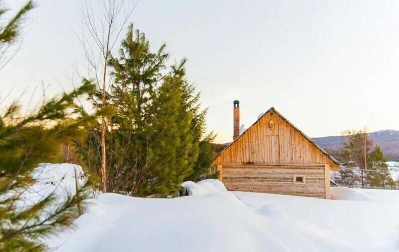 Домик в лесу с двумя спальнями и настоящей печкой.