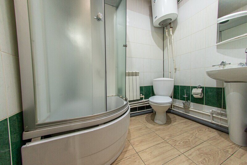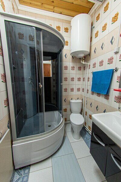 Домик смежный с соседним, с отдельной кухней, спальней и туалетом с душевой кабинкой. Рядом находится мангальная зона.