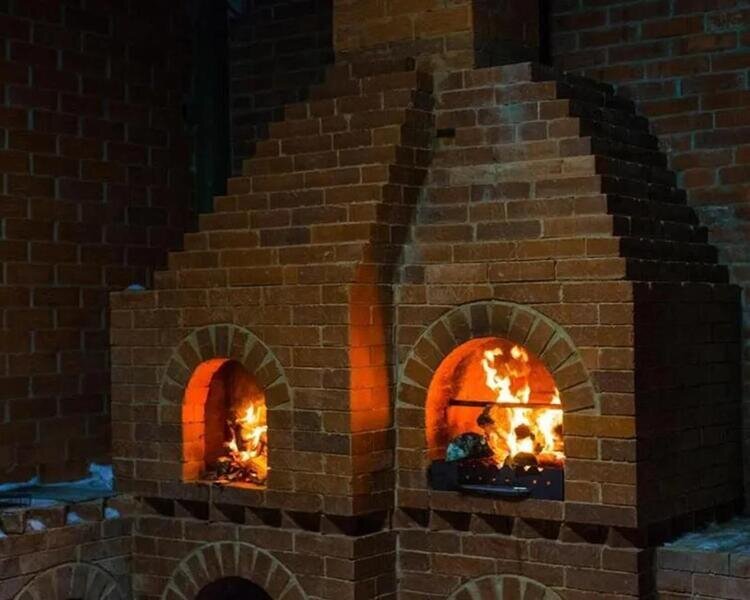 Большой банкетный зал с камином может вместить банкет на 60 персон. Уютный и вместительный зал к вашим услугам с посудой и мебелью для всех гостей.