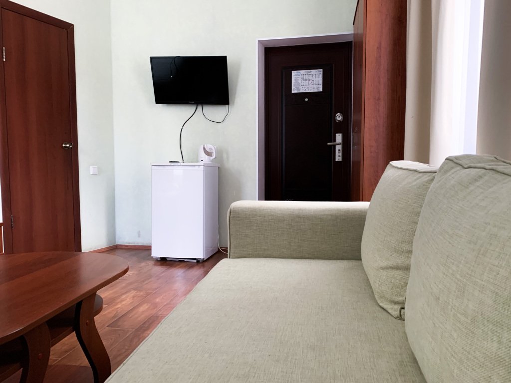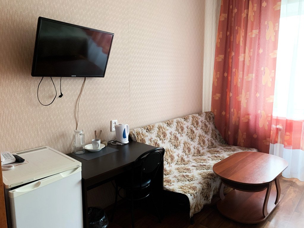 В номере вы найдёте телевизор. Оснащение зависит от выбранной категории номера.