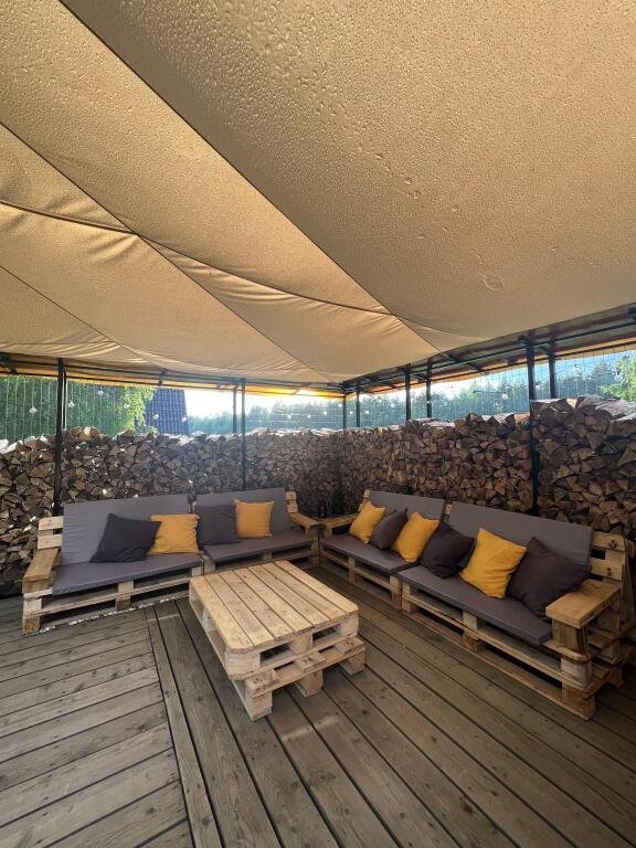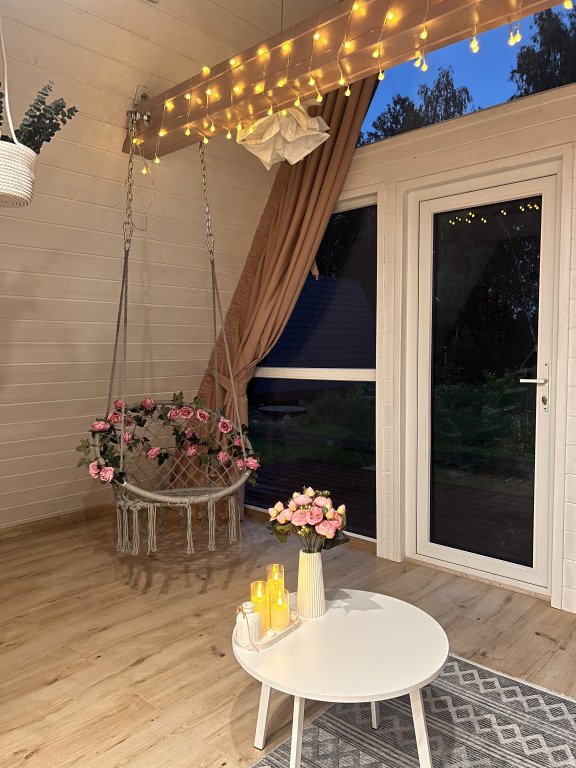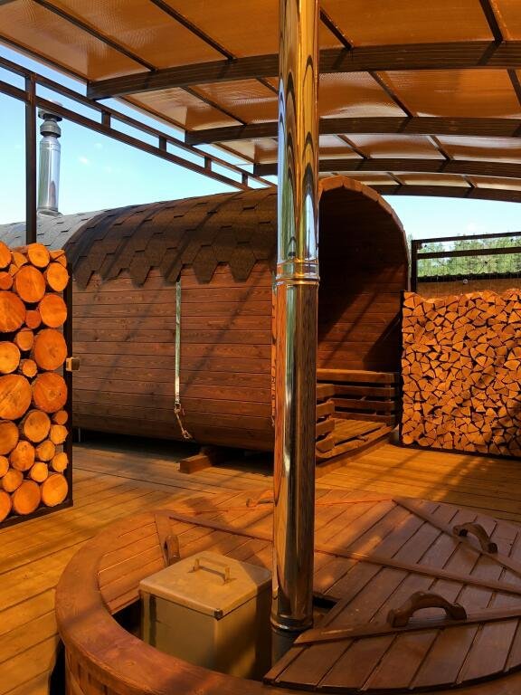 Российским гражданам при заезде обязательно нужно иметь оригинал действующего паспорта РФ. Часы работы стойки регистрации 08:00 - 22:00. Около некоторых домиков есть горячая купель или чан, который необходимо бронировать за сутки и костровая зона. В домиках «Хижина» есть встроенная сауна, которая входит в стоимость. На территории есть баня на дровах, волейбольная площадка, велосипеды, сапы, лодочка и лыжи.