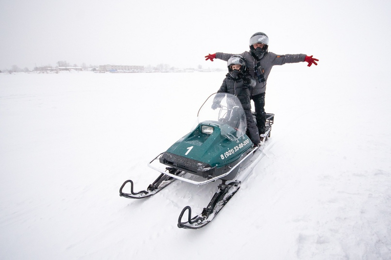 Это индивидуальная мини рыбалка-экскурсия в сопровождении нашего гида-егеря на снегоходе.