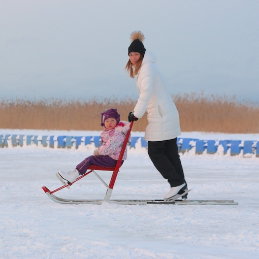 Развозка на Снегоходе до 16 км. Максимальная загрузка — 4 человека.