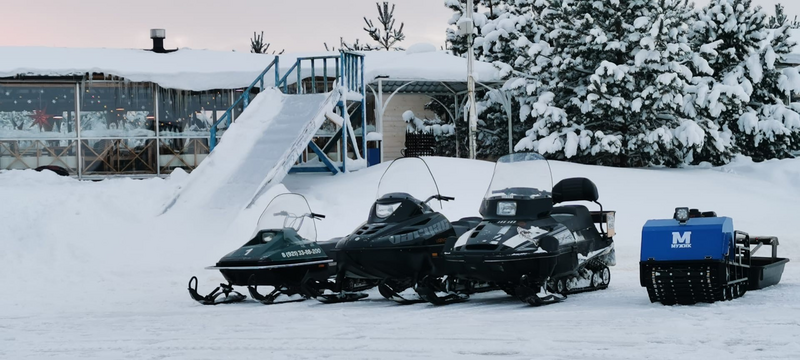 Развозка на Снегоходе до 6 км. Максимальная загрузка — 4 человека.