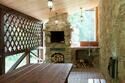 - Веранда, это место под навесом, где уютно размещен большой деревянный уголок для трапезы , а так же в дождливую погоду хватит площади для танцев.